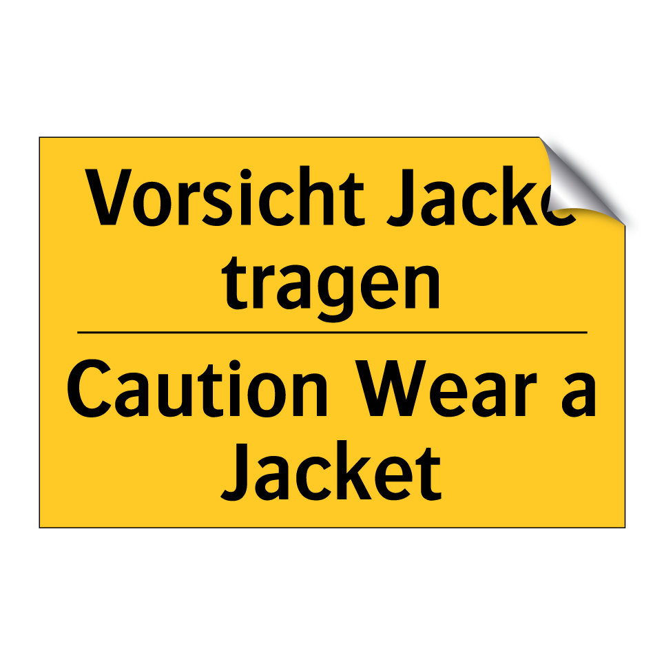 Diese auffällige Warnschild mit gelbem Hintergrund und schwarzer Schrift ist ideal, um auf die Notwendigkeit hinzuweisen, eine Jacke zu tragen. Dank der zweisprachigen Beschriftung auf Deutsch und Englisch eignet sich das Schild hervorragend für internationale Umgebungen, in denen sowohl deutsch- als auch englischsprachige Personen arbeiten oder verkehren. Es kann in verschiedenen Bereichen eingesetzt werden, wie zum Beispiel in Lagerhallen, Baustellen oder Produktionsstätten, wo das Tragen von Schutzkleidung unerlässlich ist. Die klare und prägnante Botschaft sorgt dafür, dass die Sicherheitsvorschriften leicht verständlich sind und das Risiko von Unfällen minimiert wird. Nutzen Sie diese Warnschilder, um die Sicherheit in Ihrem Arbeitsumfeld zu erhöhen.