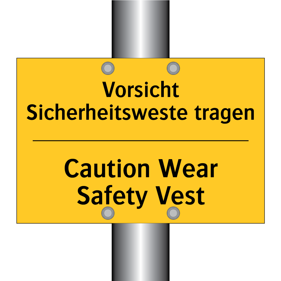 Diese zweisprachige Warnschild ist ideal für Arbeitsumgebungen, in denen Sicherheit oberste Priorität hat. Mit ihrer auffälligen gelben Hintergrundfarbe und der klaren schwarzen Schrift zieht sie sofort die Aufmerksamkeit auf sich und erinnert daran, eine Sicherheitsweste zu tragen. Die Kombination aus deutscher und englischer Sprache auf der Warnschilder sorgt dafür, dass sowohl lokale als auch internationale Mitarbeiter die wichtige Sicherheitsanweisung verstehen. Diese Warnschild eignet sich hervorragend für Baustellen, Lagerhallen oder industrielle Bereiche, wo das Tragen von Sicherheitswesten unerlässlich ist. Platzieren Sie die Warnschild an gut sichtbaren Stellen, um die Sicherheit aller zu gewährleisten und Unfälle zu vermeiden.