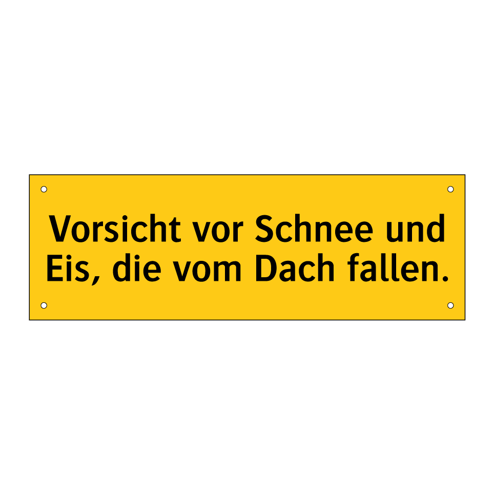 Warnschild mit dem Text Vorsicht vor Schnee und Eis, die vom Dach fallen.