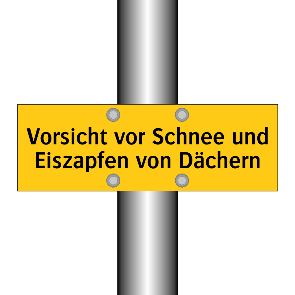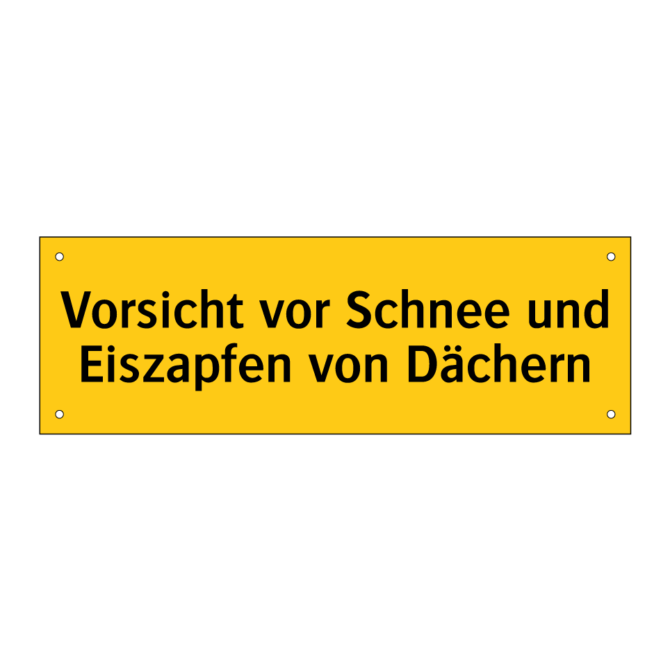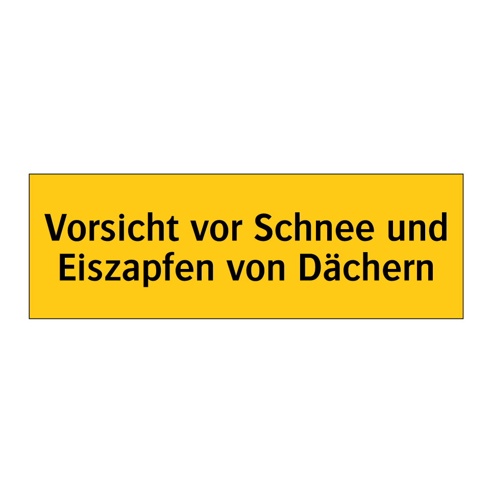 Warnschild mit dem Text Vorsicht vor Schnee und Eiszapfen von Dächern