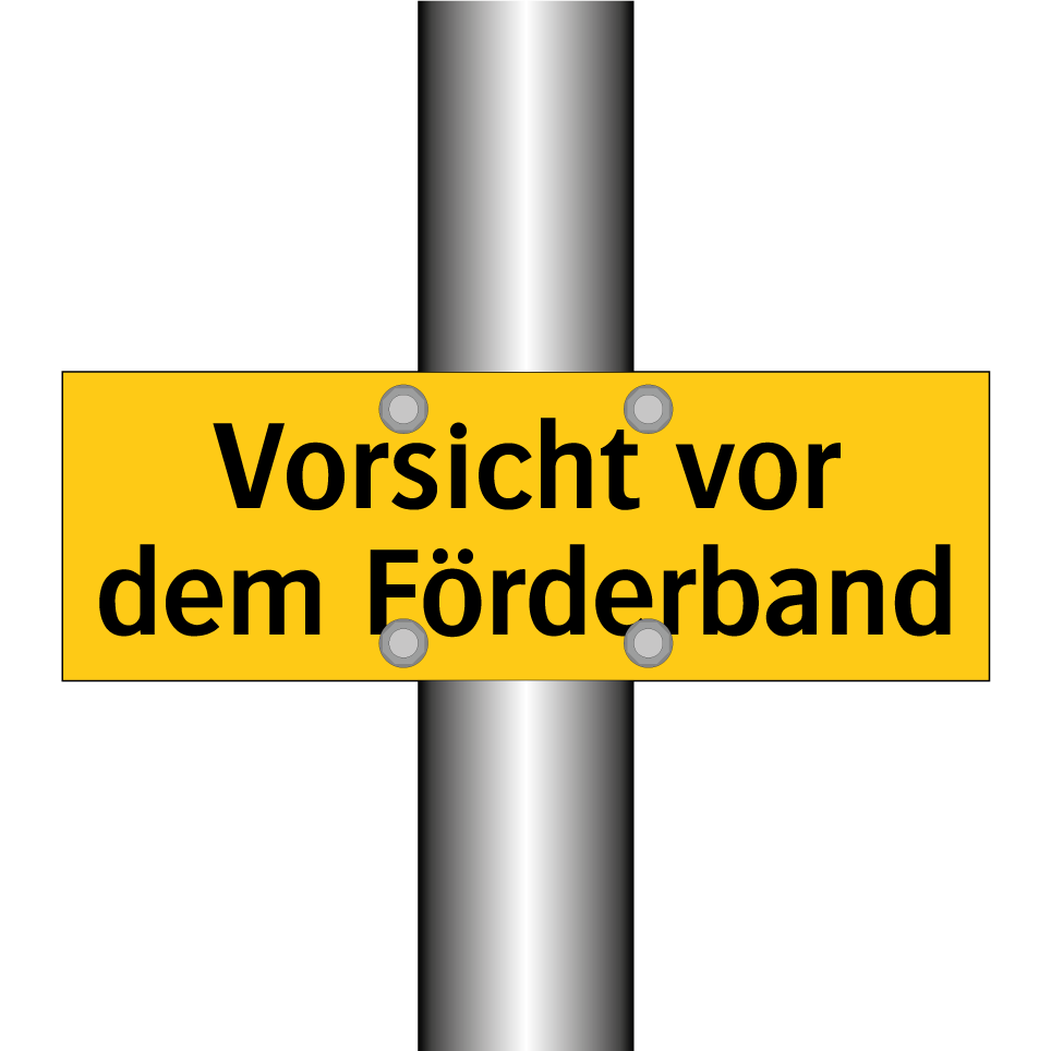 Warnschild mit dem Text Vorsicht vor dem Förderband