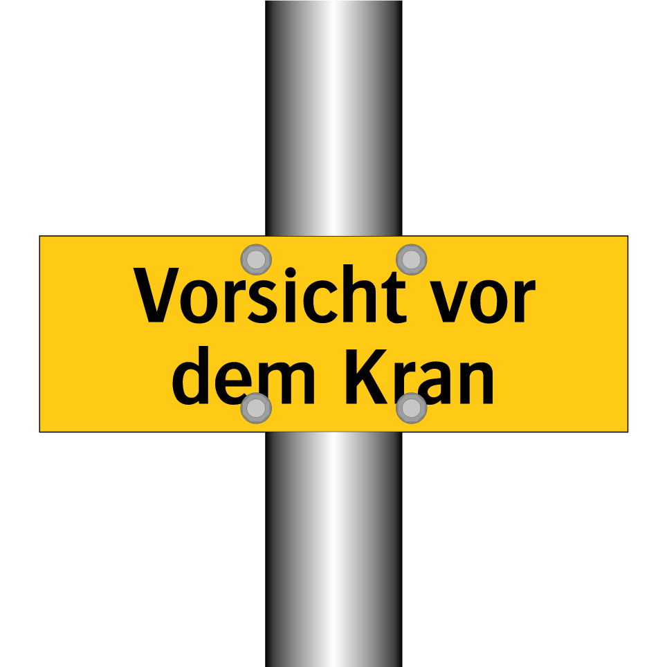 Warnschild mit dem Text Vorsicht vor dem Kran