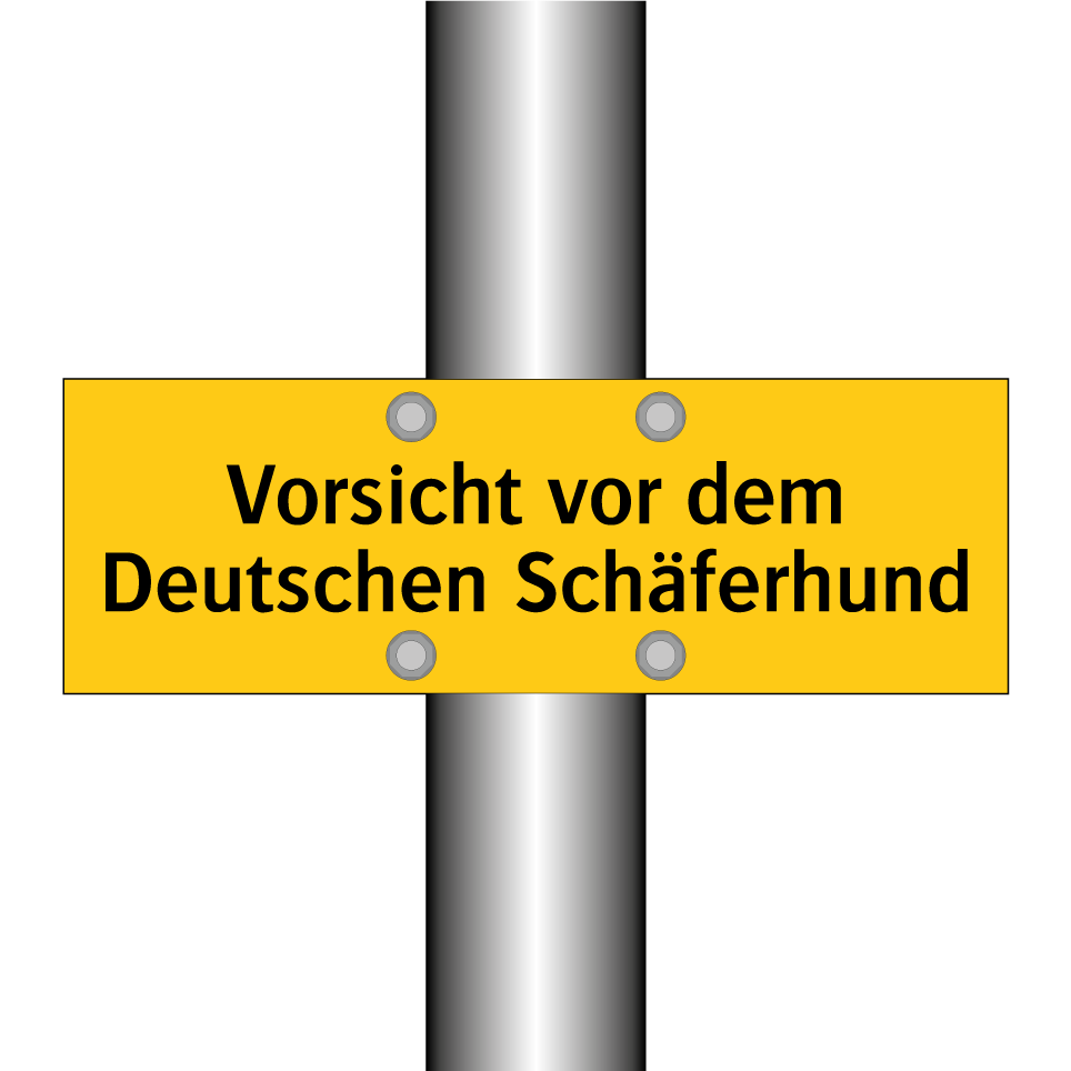 Warnschild mit dem Text Vorsicht vor dem Deutschen Schäferhund