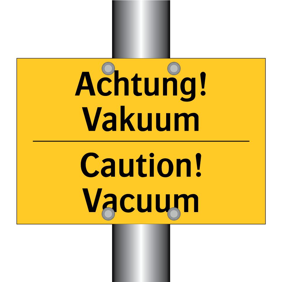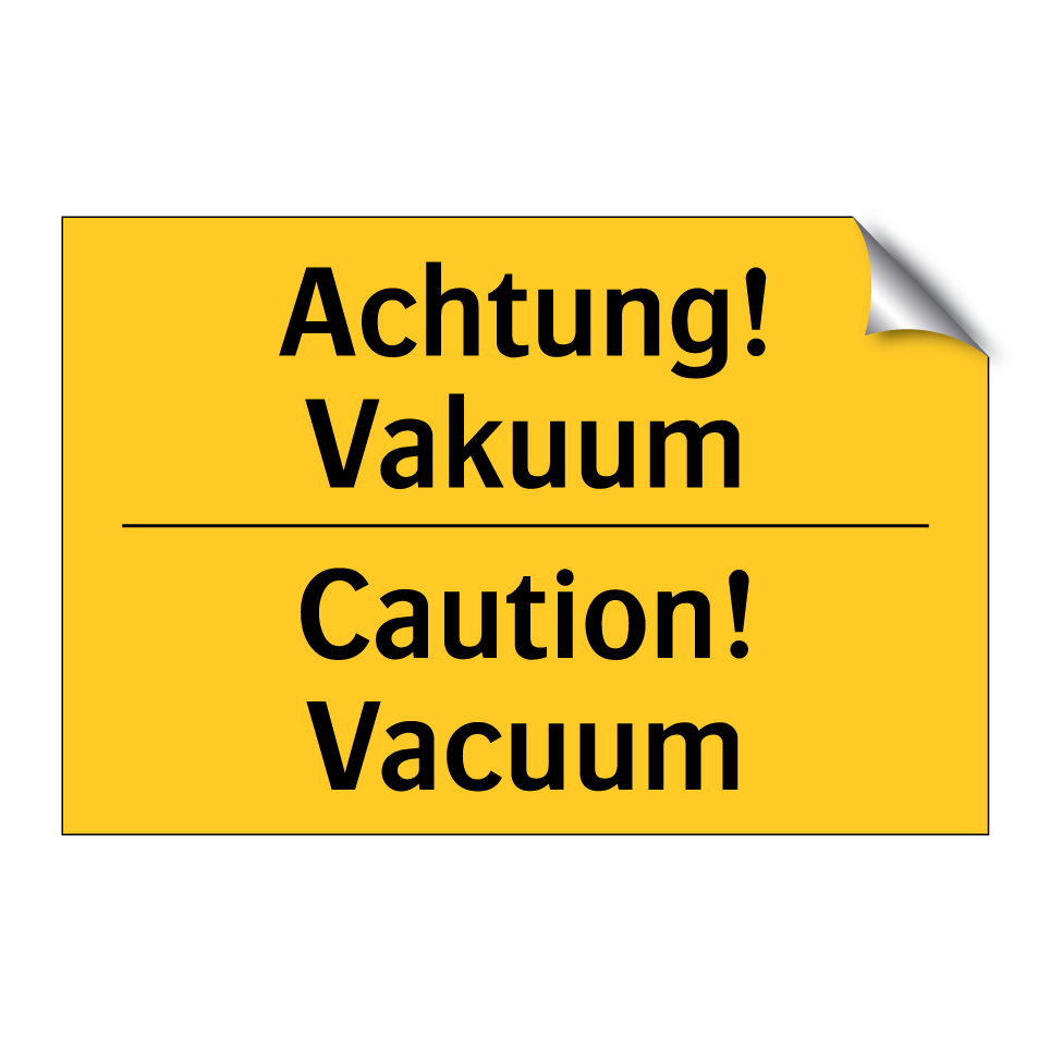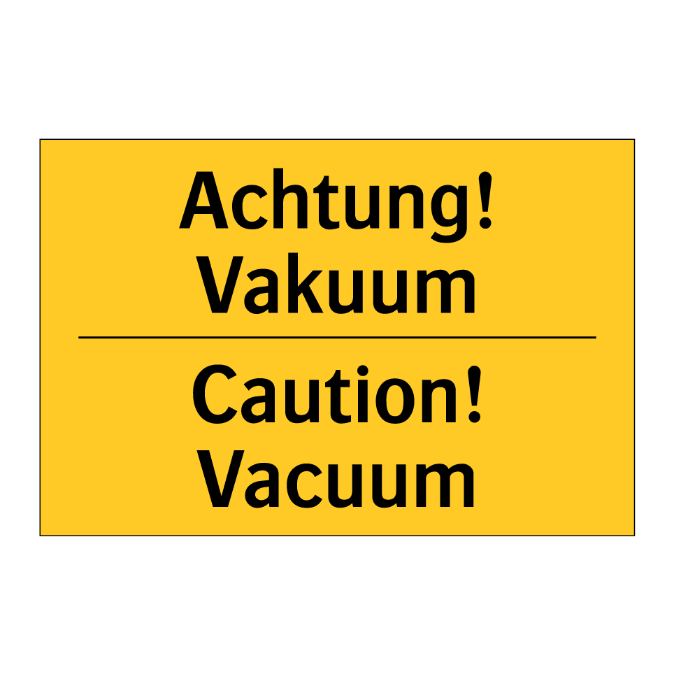 Zweisprachiges Warnschild mit deutschem Text Achtung! Vakuum und englischem Text Caution! Vacuum