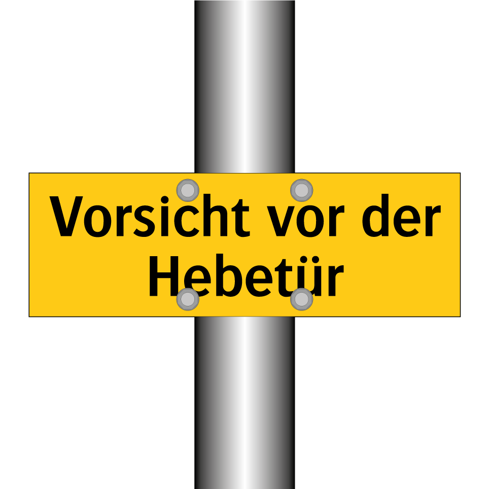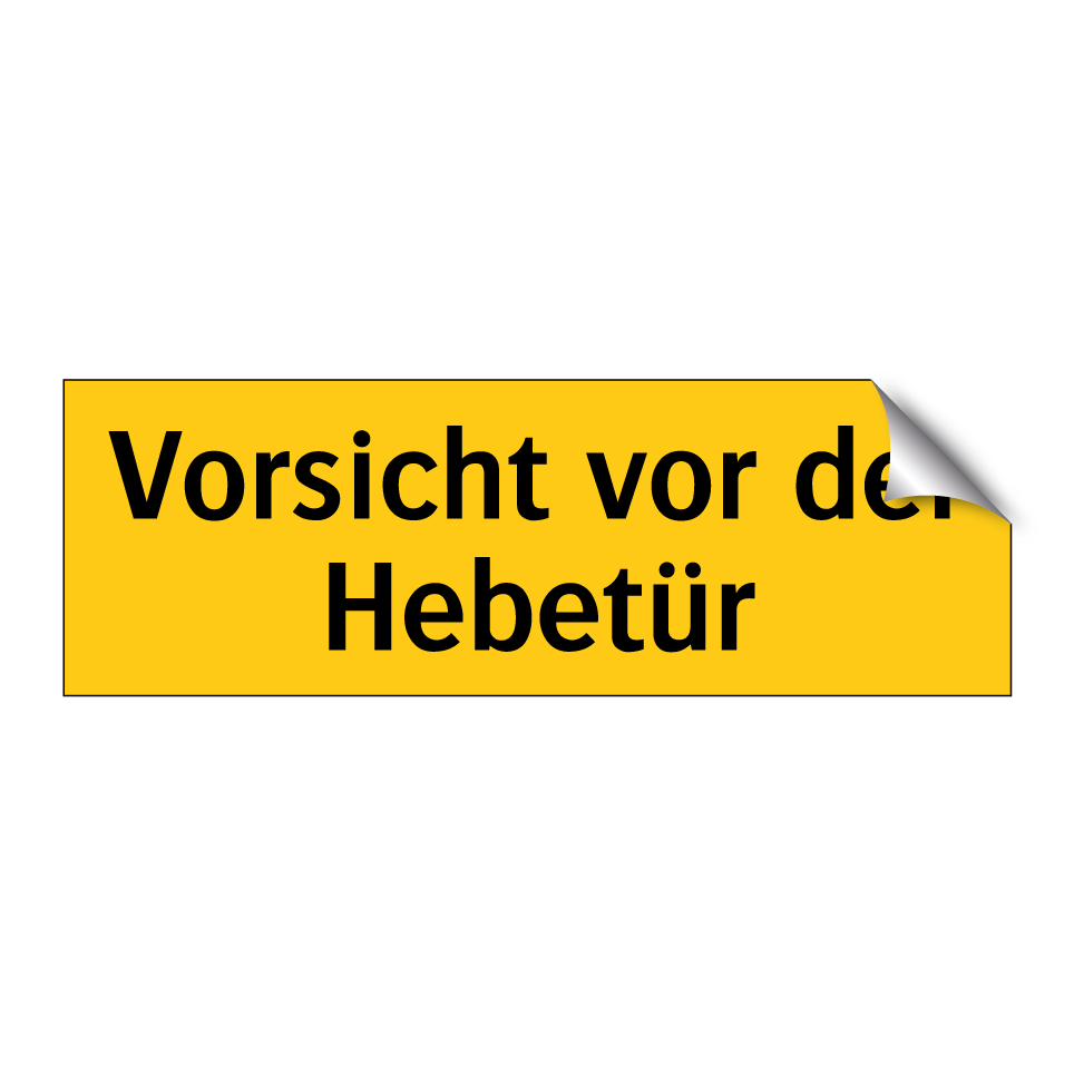 Warnschild mit dem Text Vorsicht vor der Hebetür