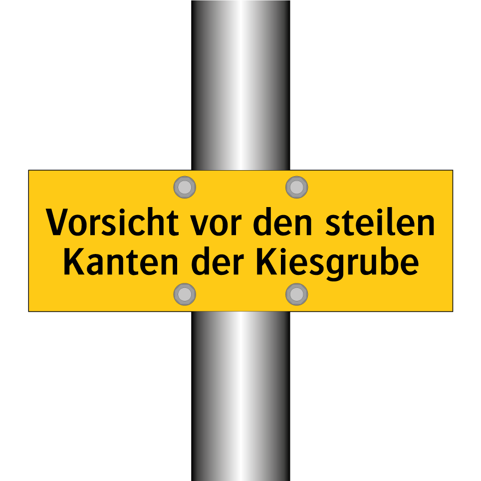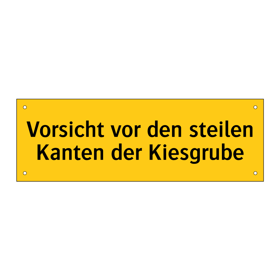 Warnschild mit dem Text Vorsicht vor den steilen Kanten der Kiesgrube