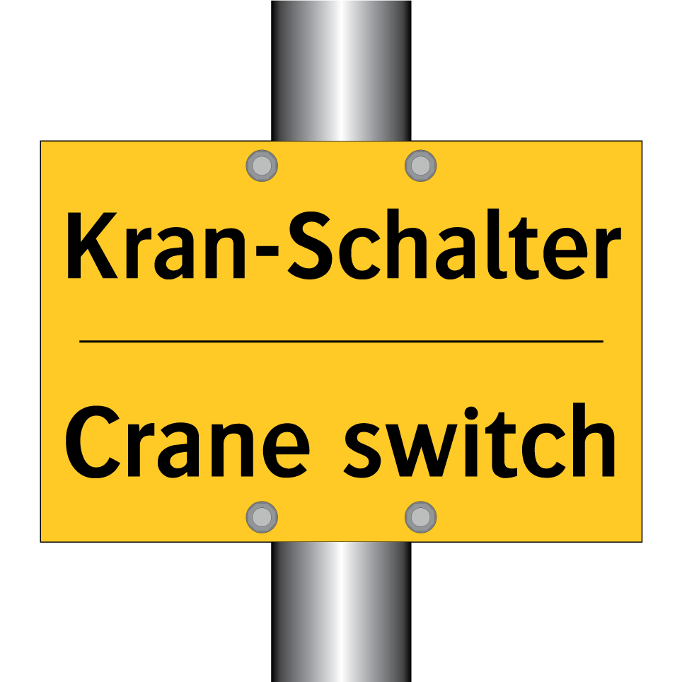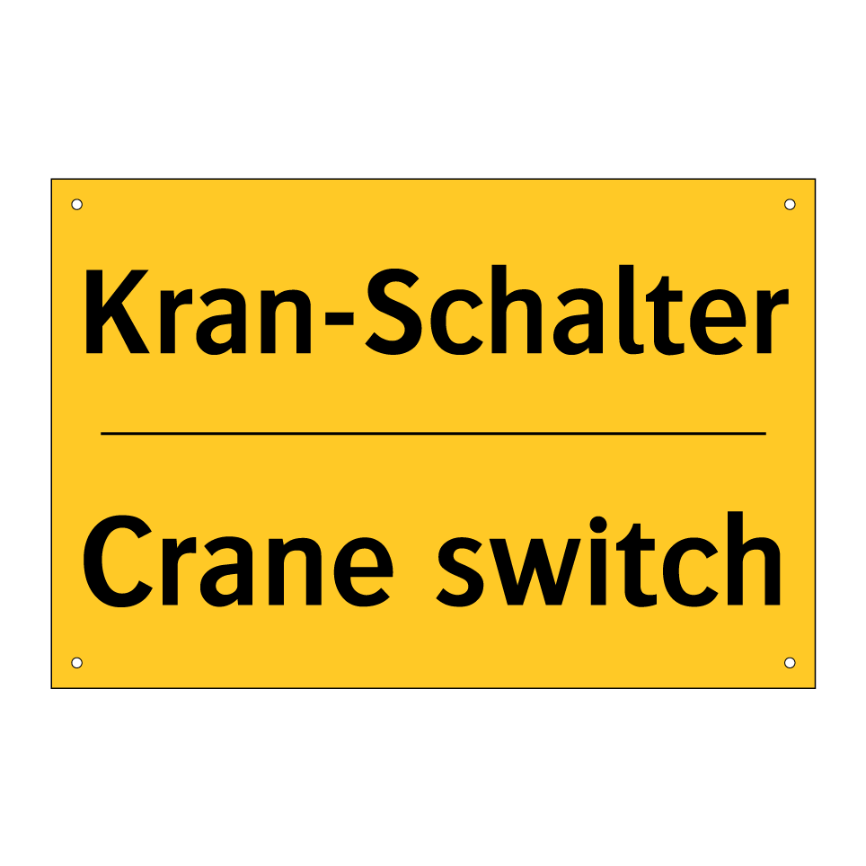 Zweisprachiges Warnschild mit deutschem Text Kran-Schalter und englischem Text Crane switch