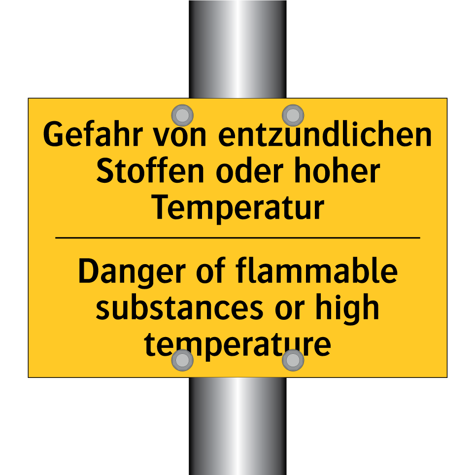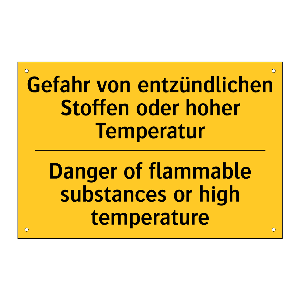 Zweisprachiges Warnschild mit deutschem Text Gefahr von entzündlichen Stoffen oder hoher Temperatur und englischem Text Danger of flammable substances or high temperature