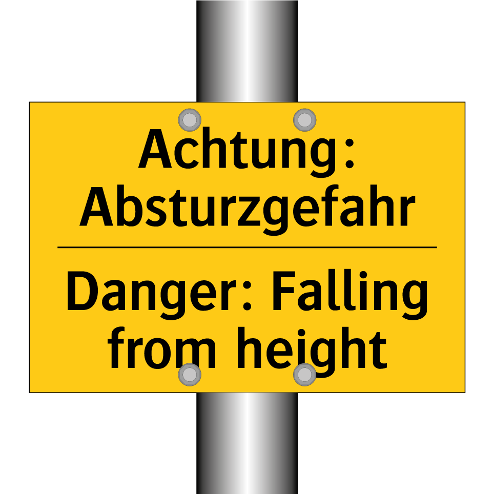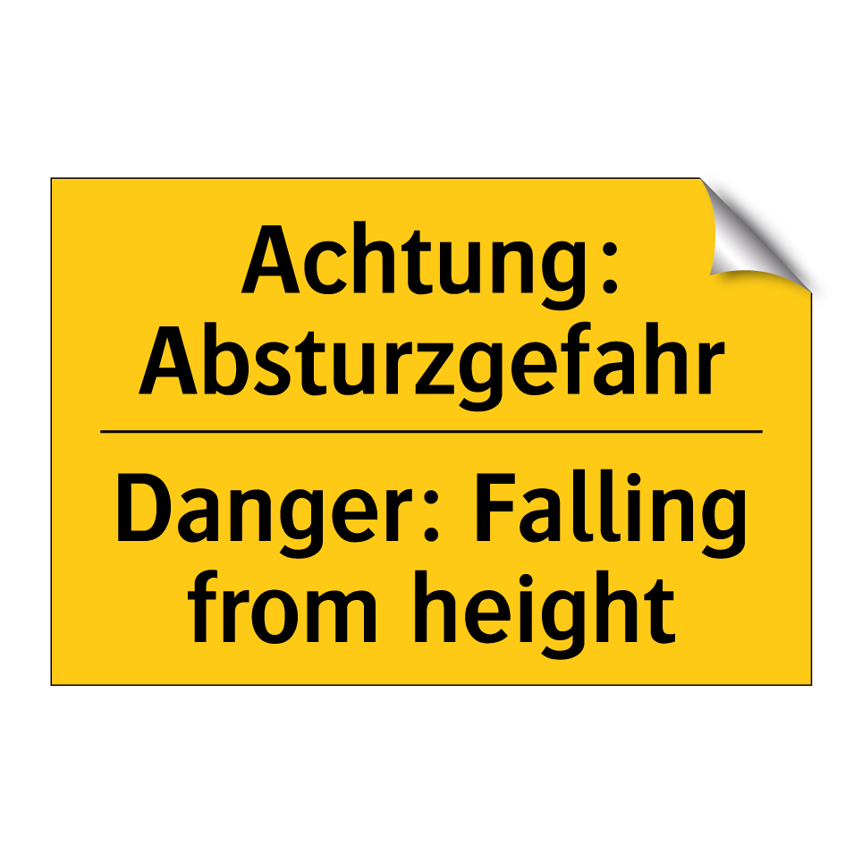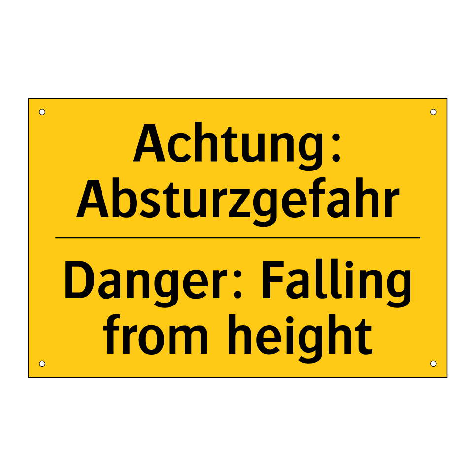 Zweisprachiges Warnschild mit deutschem Text Achtung: Absturzgefahr und englischem Text Danger: Falling from height