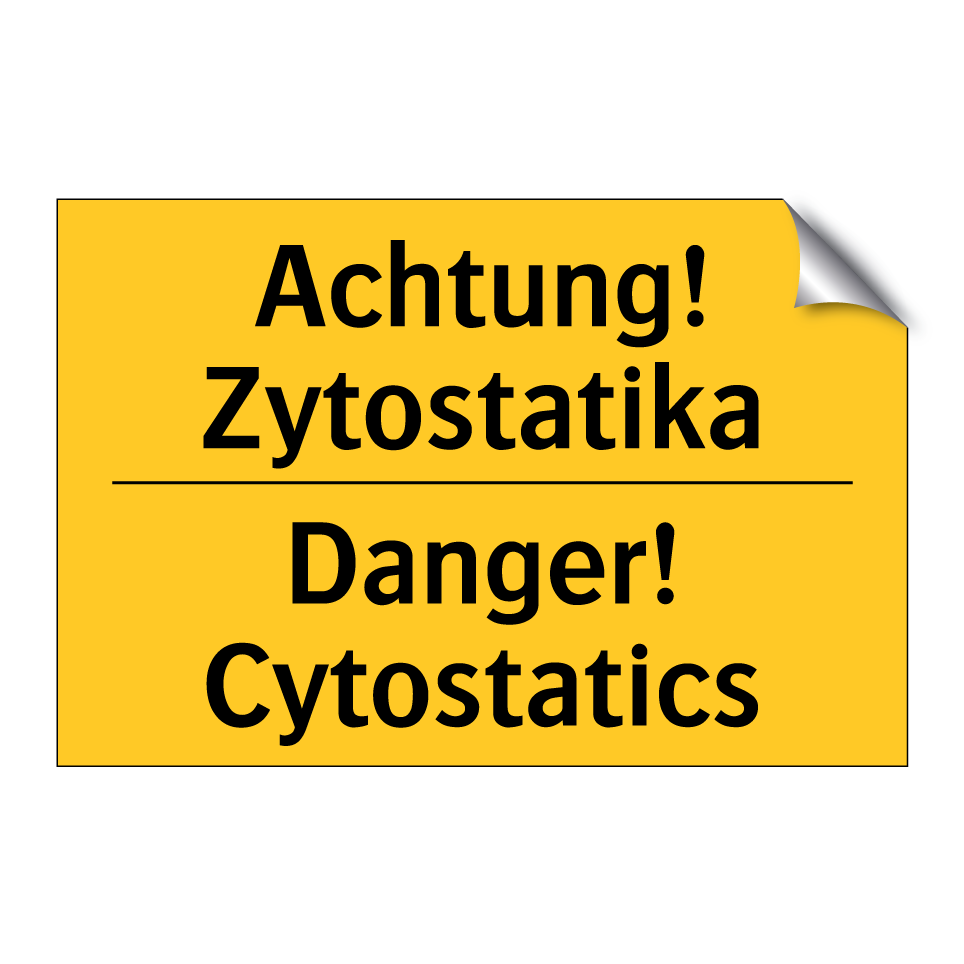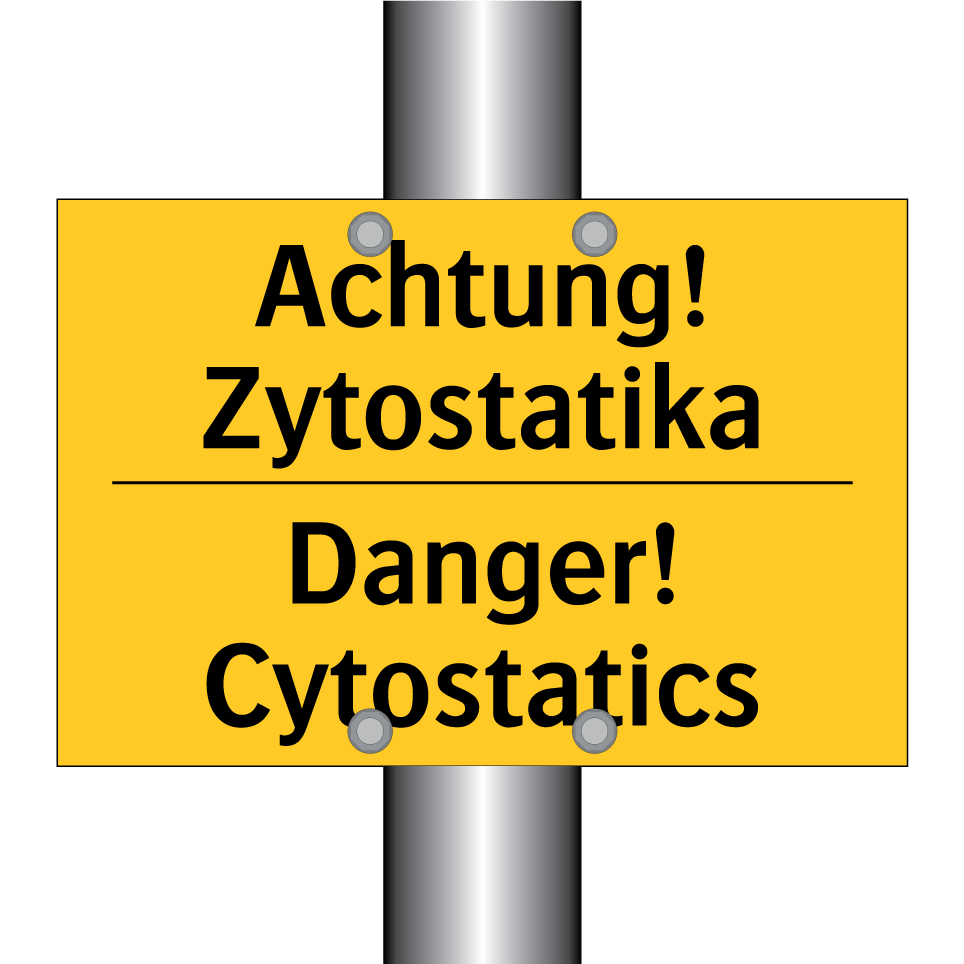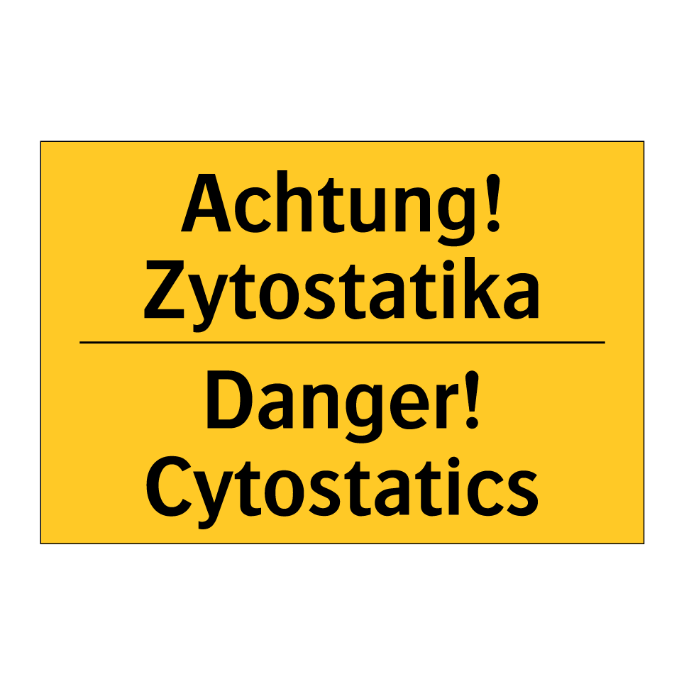 Zweisprachiges Warnschild mit deutschem Text Achtung! Zytostatika und englischem Text Danger! Cytostatics