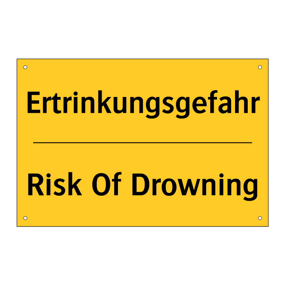 Diese auffällige Warnschild mit gelbem Hintergrund und schwarzer Schrift ist ein unverzichtbares Sicherheitsmerkmal an Orten in der Nähe von Wasser. Die zweisprachige Beschriftung auf Deutsch und Englisch sorgt dafür, dass sowohl Einheimische als auch internationale Besucher die Gefahr des Ertrinkens sofort erkennen. Diese Warnschilder sind ideal für den Einsatz an Stränden, Schwimmbädern, Seen und anderen Gewässern, wo die Gefahr des Ertrinkens besteht. Durch die klare und deutliche Darstellung der Warnung wird die Sicherheit erhöht und das Bewusstsein für potenzielle Gefahren geschärft. Die zweisprachige Ausführung maximiert die Verständlichkeit und Reichweite der Botschaft, was besonders in touristischen Gebieten von Vorteil ist.
