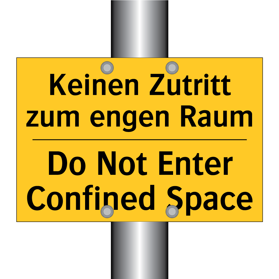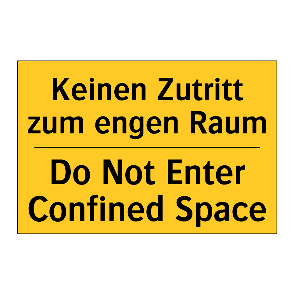 Zweisprachiges Warnschild mit deutschem Text Keinen Zutritt zum engen Raum und englischem Text Do Not Enter Confined Space