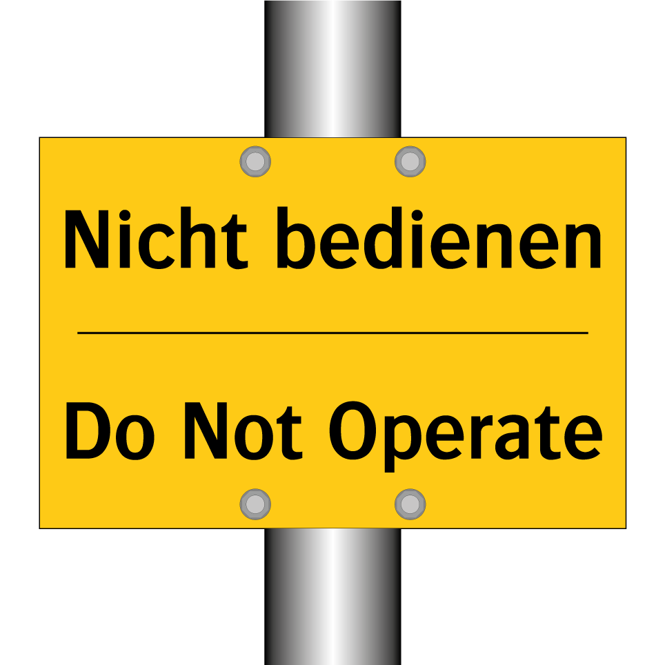 Zweisprachiges Warnschild mit deutschem Text Nicht bedienen und englischem Text Do Not Operate