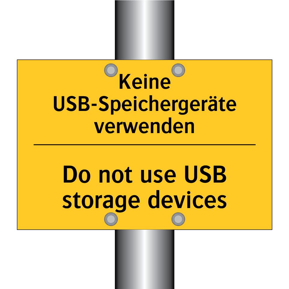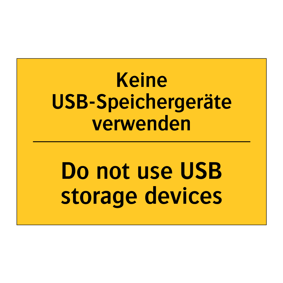 Zweisprachiges Warnschild mit deutschem Text Keine USB-Speichergeräte verwenden und englischem Text Do not use USB storage devices