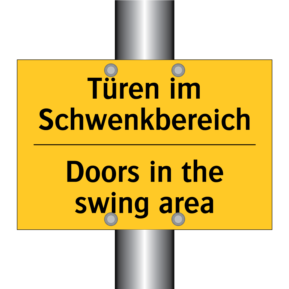 Zweisprachiges Warnschild mit deutschem Text Türen im Schwenkbereich und englischem Text Doors in the swing area