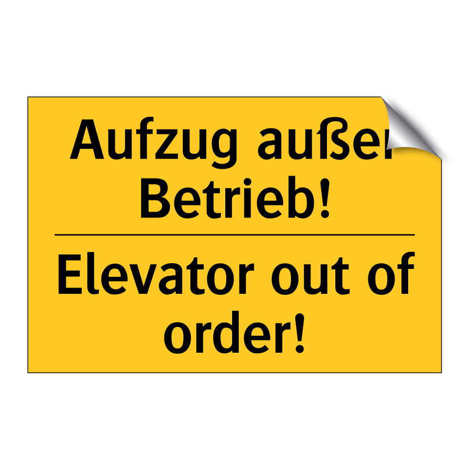 Zweisprachiges Warnschild mit deutschem Text Aufzug außer Betrieb! und englischem Text Elevator out of order!