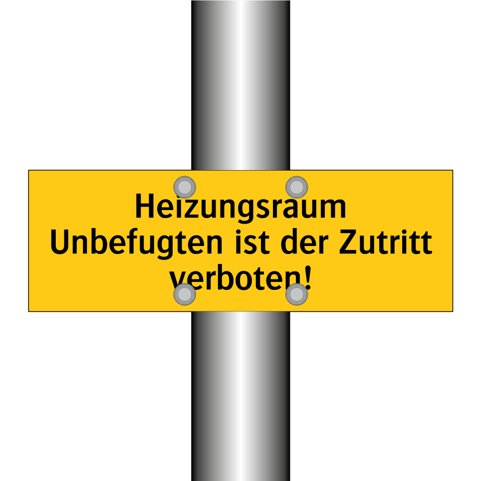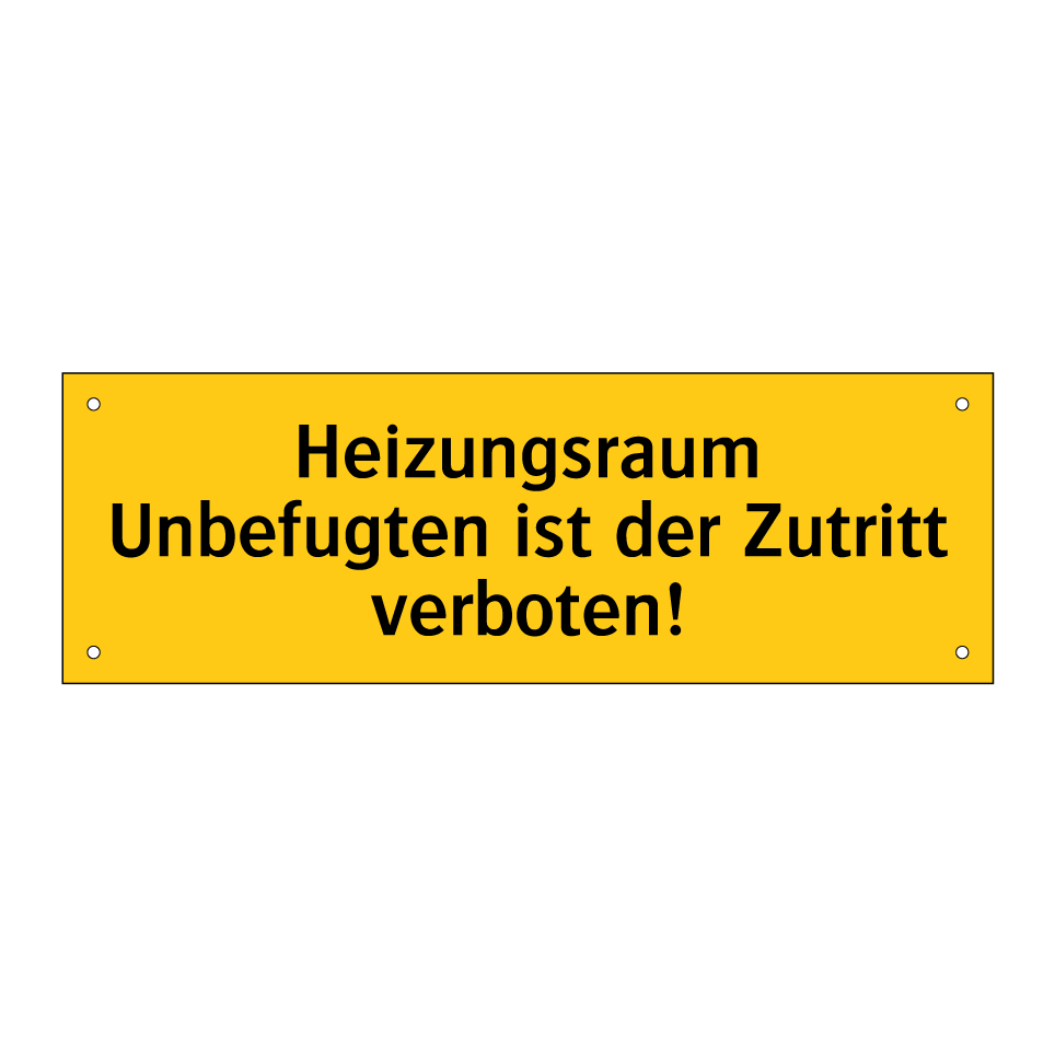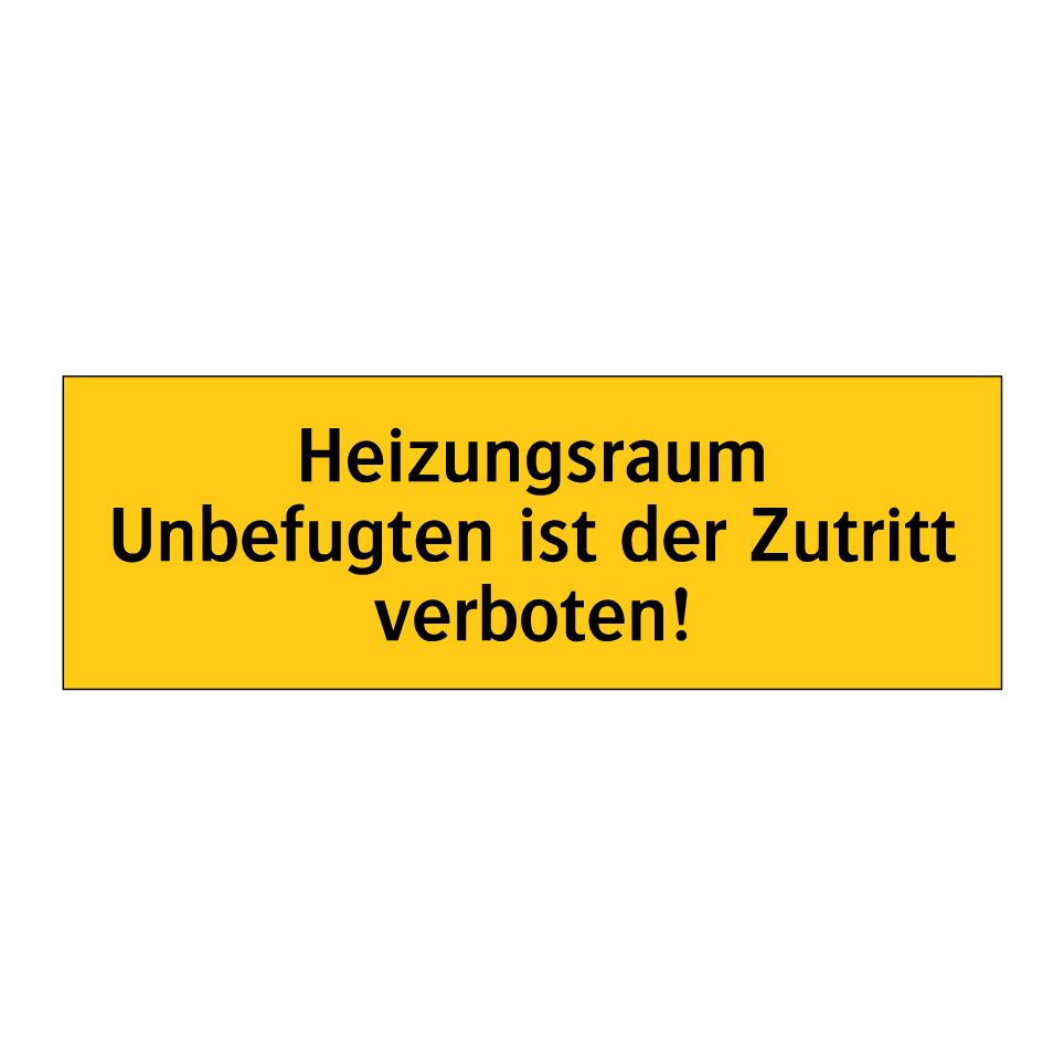 Warnschild mit dem Text Heizungsraum Unbefugten ist der Zutritt verboten!