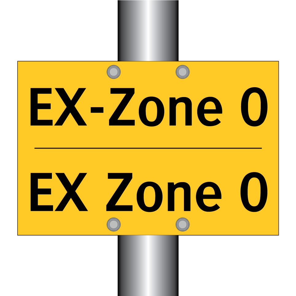 Zweisprachiges Warnschild mit deutschem Text EX-Zone 0 und englischem Text EX Zone 0
