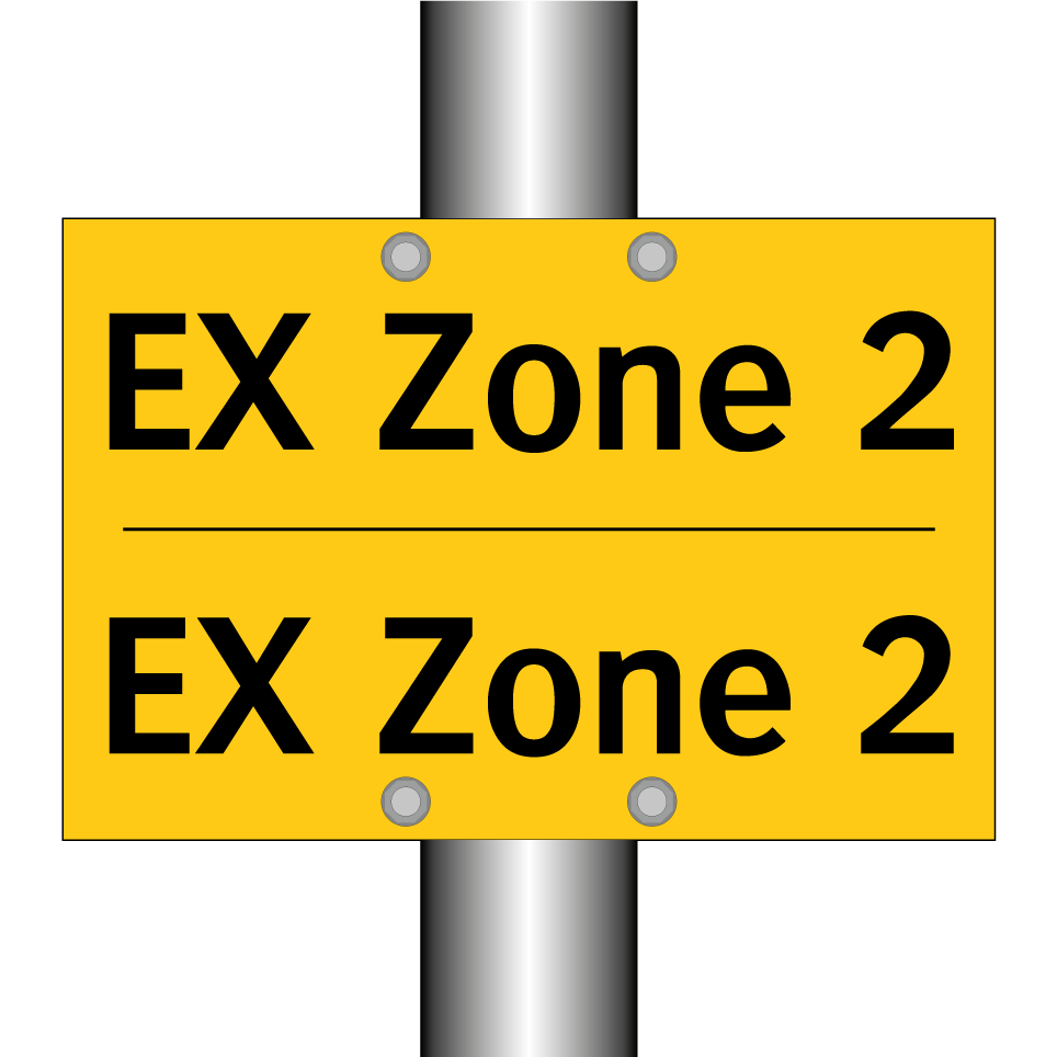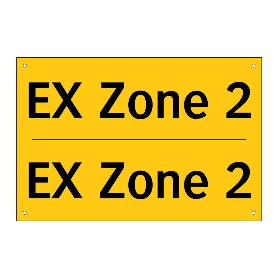 Zweisprachiges Warnschild mit deutschem Text EX Zone 2 und englischem Text EX Zone 2