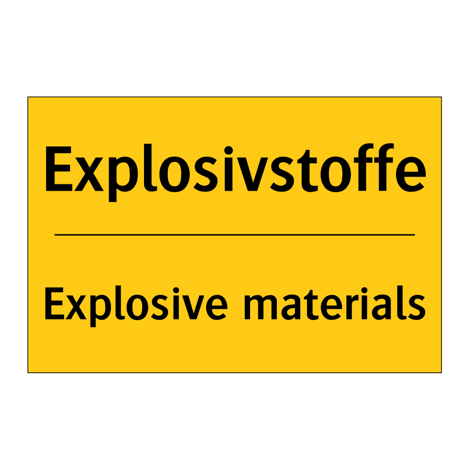 Zweisprachiges Warnschild mit deutschem Text Explosivstoffe und englischem Text Explosive materials