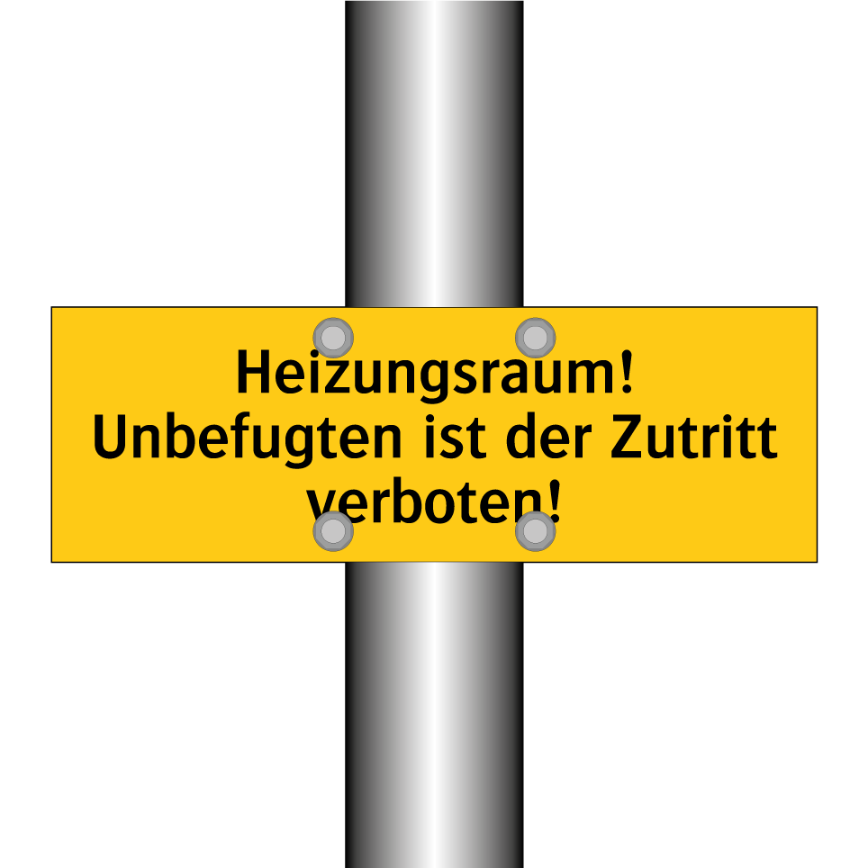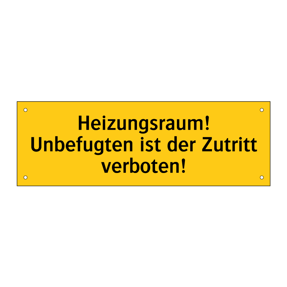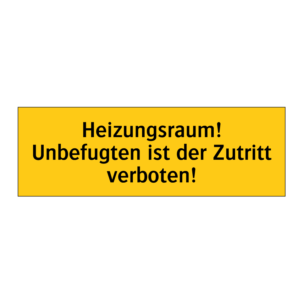 Warnschild mit dem Text Heizungsraum! Unbefugten ist der Zutritt verboten!