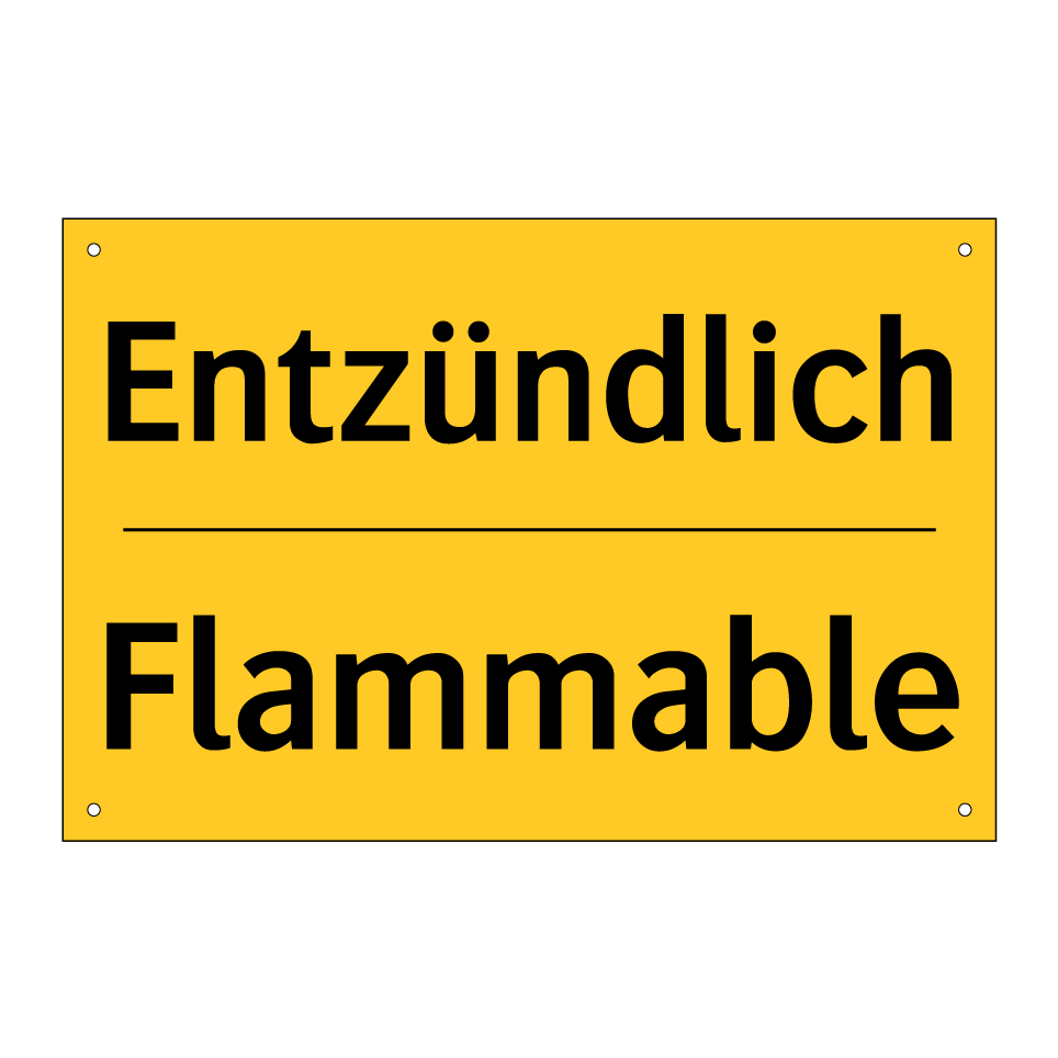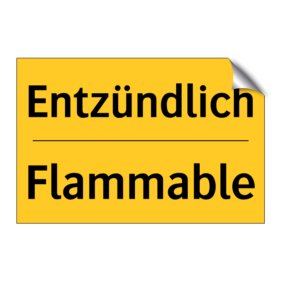 Zweisprachiges Warnschild mit deutschem Text Entzündlich und englischem Text Flammable