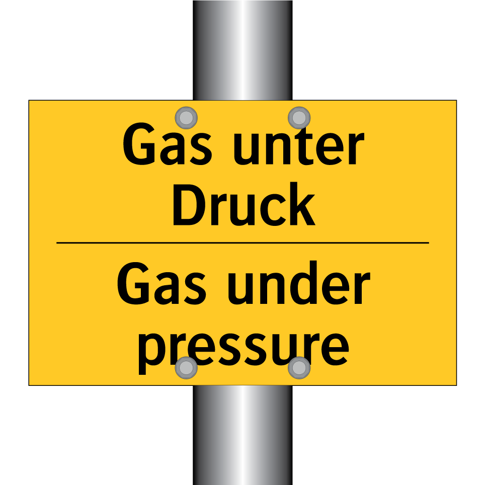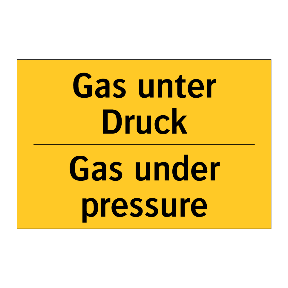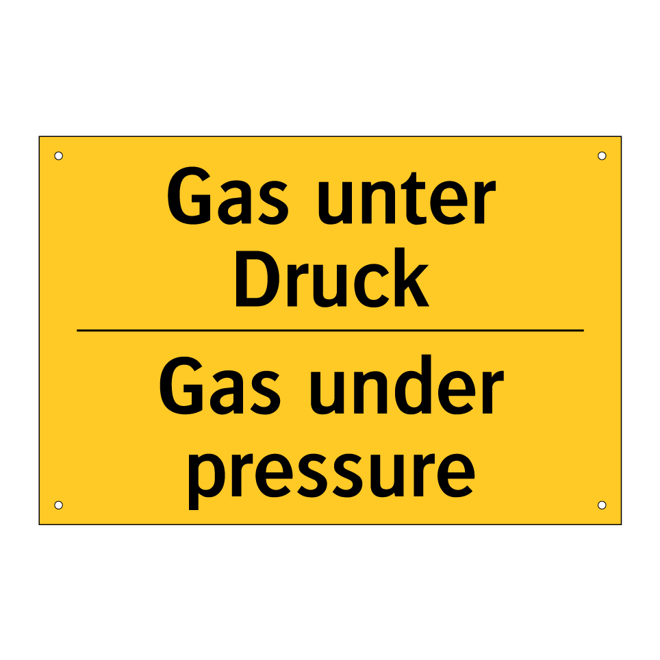 Zweisprachiges Warnschild mit deutschem Text Gas unter Druck und englischem Text Gas under pressure