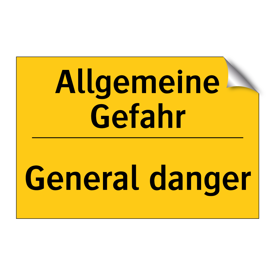 Zweisprachiges Warnschild mit deutschem Text Allgemeine Gefahr und englischem Text General danger
