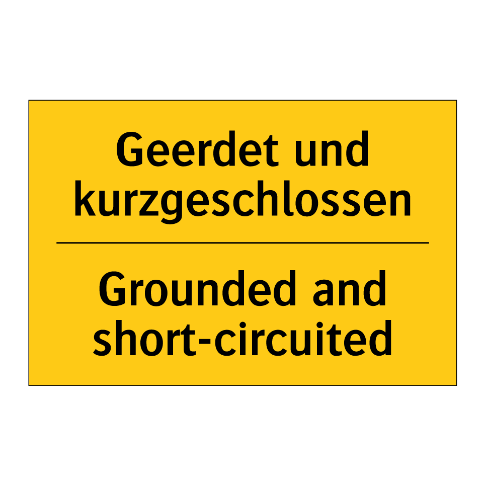 Zweisprachiges Warnschild mit deutschem Text Geerdet und kurzgeschlossen und englischem Text Grounded and short-circuited
