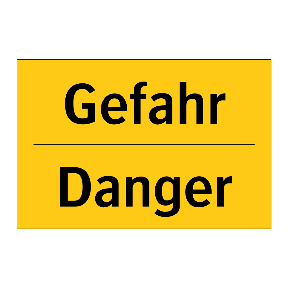 Zweisprachiges Warnschild mit deutschem Text Gefahr und englischem Text Danger
