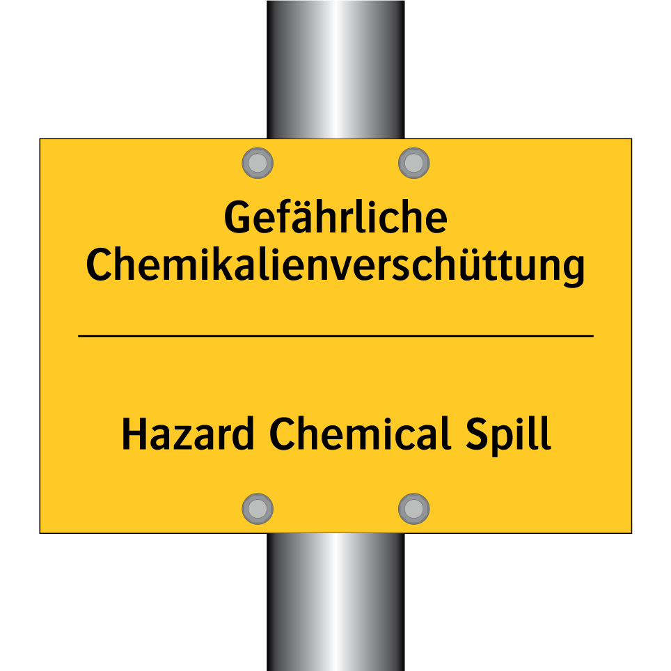 Diese Warnschild mit gelbem Hintergrund und schwarzem Text ist ideal für Bereiche, in denen potenziell gefährliche Chemikalien verschüttet werden könnten. Die zweisprachige Beschriftung auf Deutsch und Englisch sorgt dafür, dass sowohl lokale als auch internationale Mitarbeiter die Warnung sofort verstehen. Diese Warnschilder sind besonders nützlich in Laboren, Produktionsstätten und Lagerhäusern, wo Chemikalien gehandhabt werden. Durch die klare und auffällige Gestaltung wird die Aufmerksamkeit effektiv auf mögliche Gefahren gelenkt, was zur Erhöhung der Sicherheit am Arbeitsplatz beiträgt. Platzieren Sie das Schild an gut sichtbaren Stellen, um das Bewusstsein für chemische Risiken zu schärfen und Unfälle zu vermeiden.