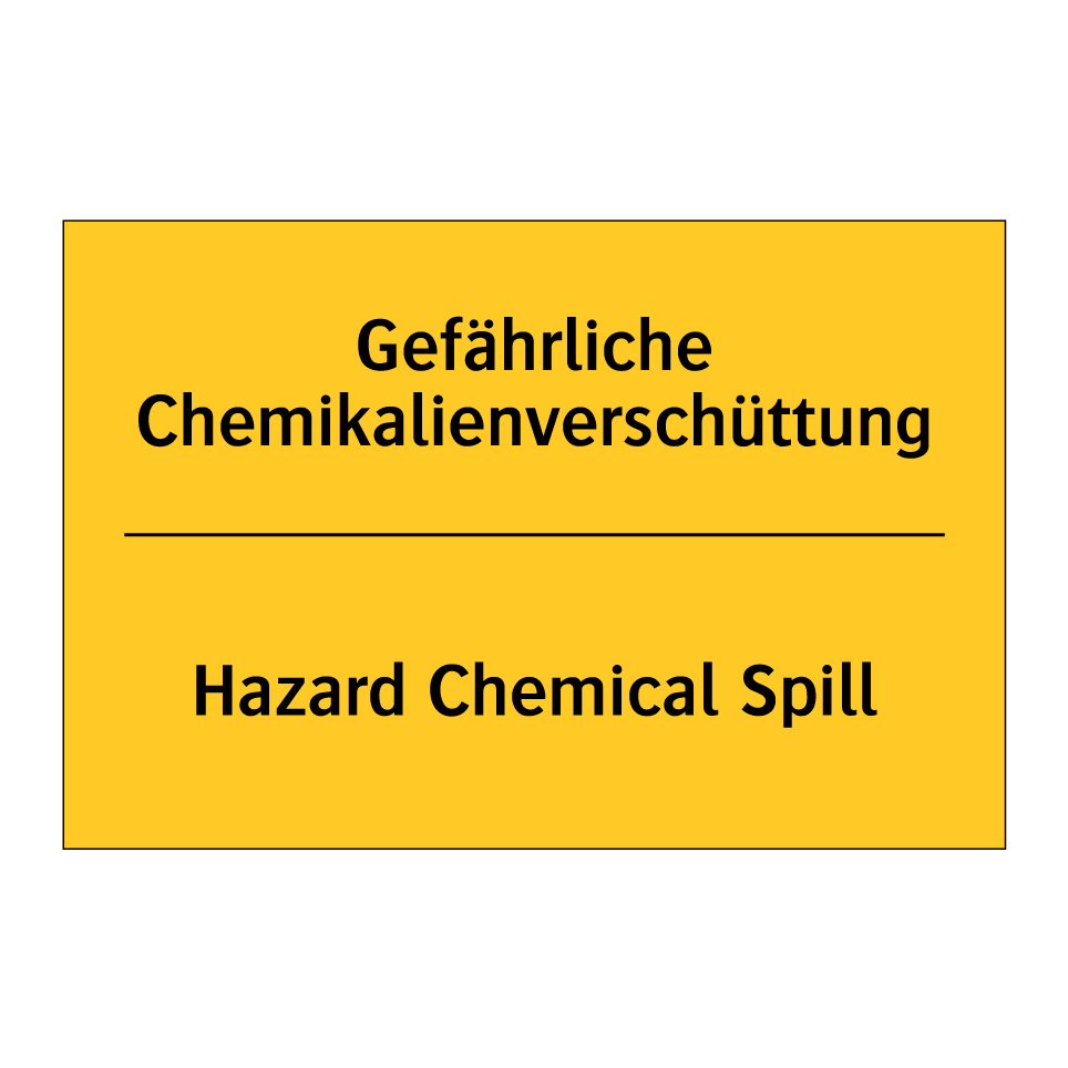 Zweisprachiges Warnschild mit deutschem Text Gefährliche Chemikalienverschüttung und englischem Text Hazard Chemical Spill
