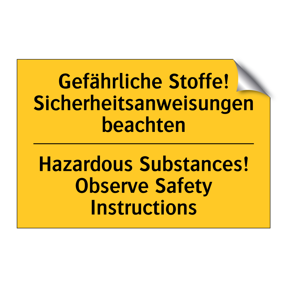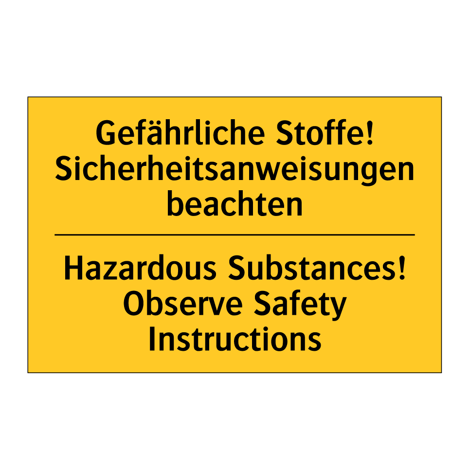 Zweisprachiges Warnschild mit deutschem Text Gefährliche Stoffe! Sicherheitsanweisungen beachten und englischem Text Hazardous Substances! Observe Safety Instructions