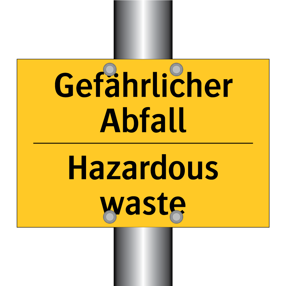 Zweisprachiges Warnschild mit deutschem Text Gefährlicher Abfall und englischem Text Hazardous waste