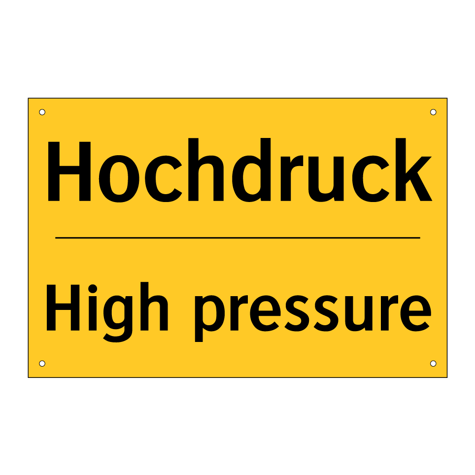 Zweisprachiges Warnschild mit deutschem Text Hochdruck und englischem Text High pressure