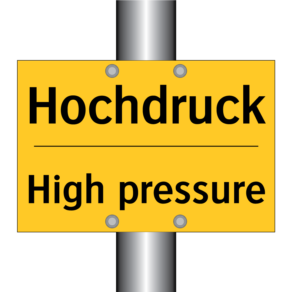 Entdecken Sie die vielseitige Einsatzmöglichkeit dieser Warnschild mit gelbem Hintergrund und schwarzer Schrift. Diese zweisprachige Warnschilder, die sowohl auf Deutsch als auch auf Englisch beschriftet ist, bietet den Vorteil, dass sie in internationalen Umgebungen leicht verständlich ist. Sie eignet sich ideal für industrielle Bereiche, in denen Hochdrucksysteme im Einsatz sind, und kann an Maschinen, in Werkstätten oder in Produktionshallen platziert werden. Die deutliche Kennzeichnung sorgt für erhöhte Sicherheit und warnt effektiv vor potenziellen Gefahren durch hohen Druck. Nutzen Sie diese Warnschild, um die Sicherheit in Ihrem Arbeitsumfeld zu maximieren und Unfälle zu vermeiden.