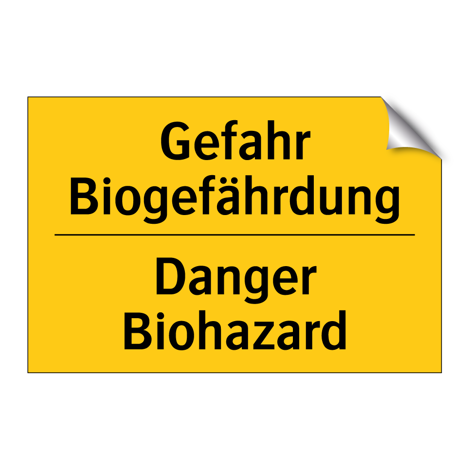 Zweisprachiges Warnschild mit deutschem Text Gefahr Biogefährdung und englischem Text Danger Biohazard