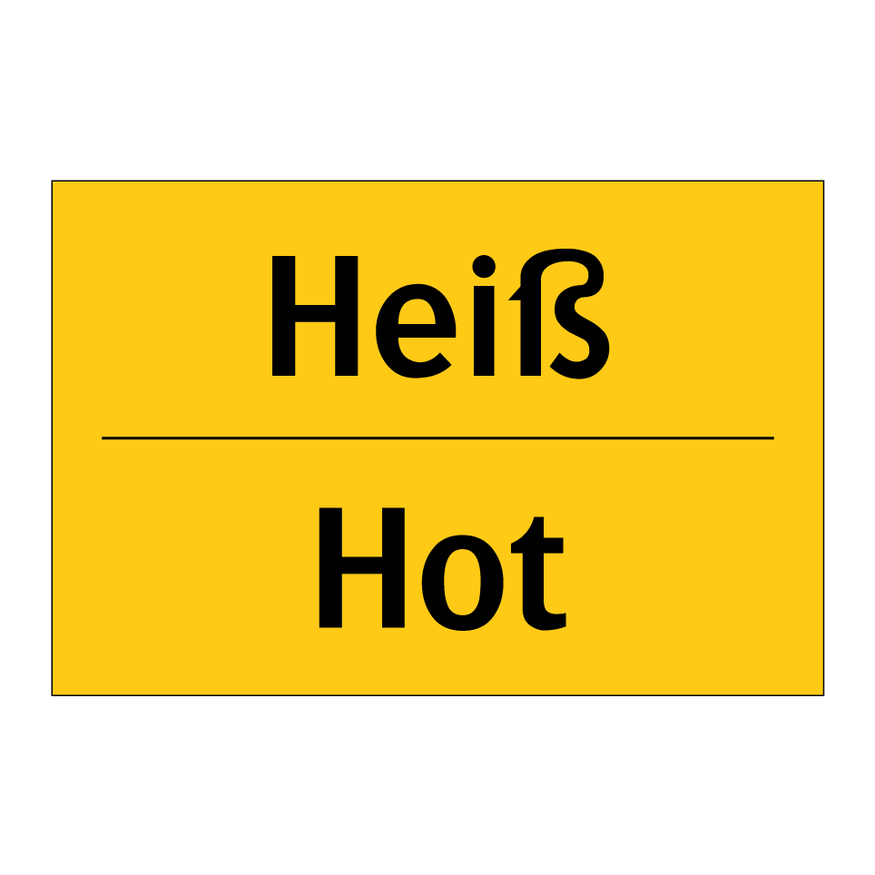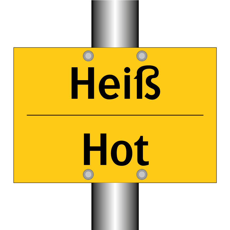 Zweisprachiges Warnschild mit deutschem Text Heiß und englischem Text Hot