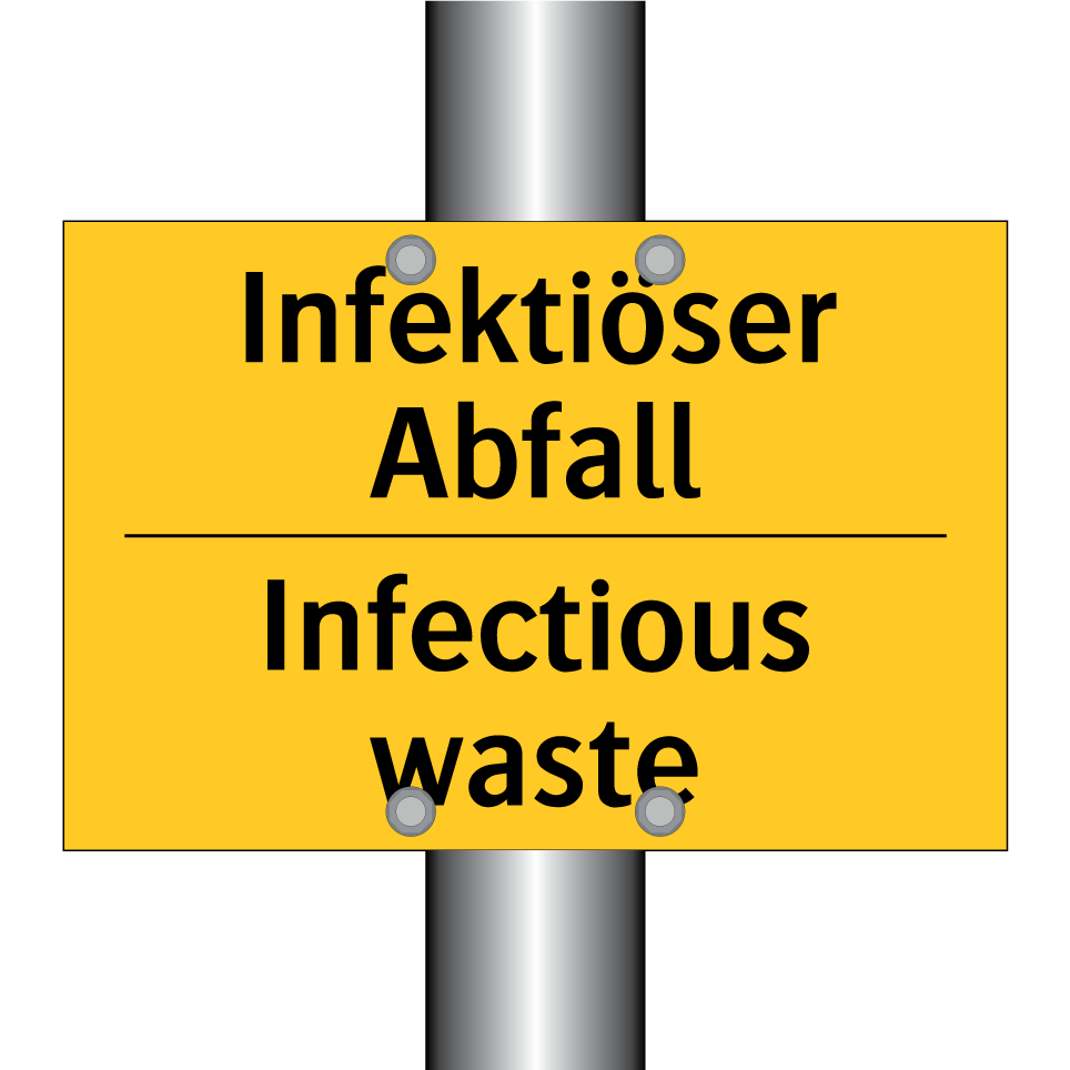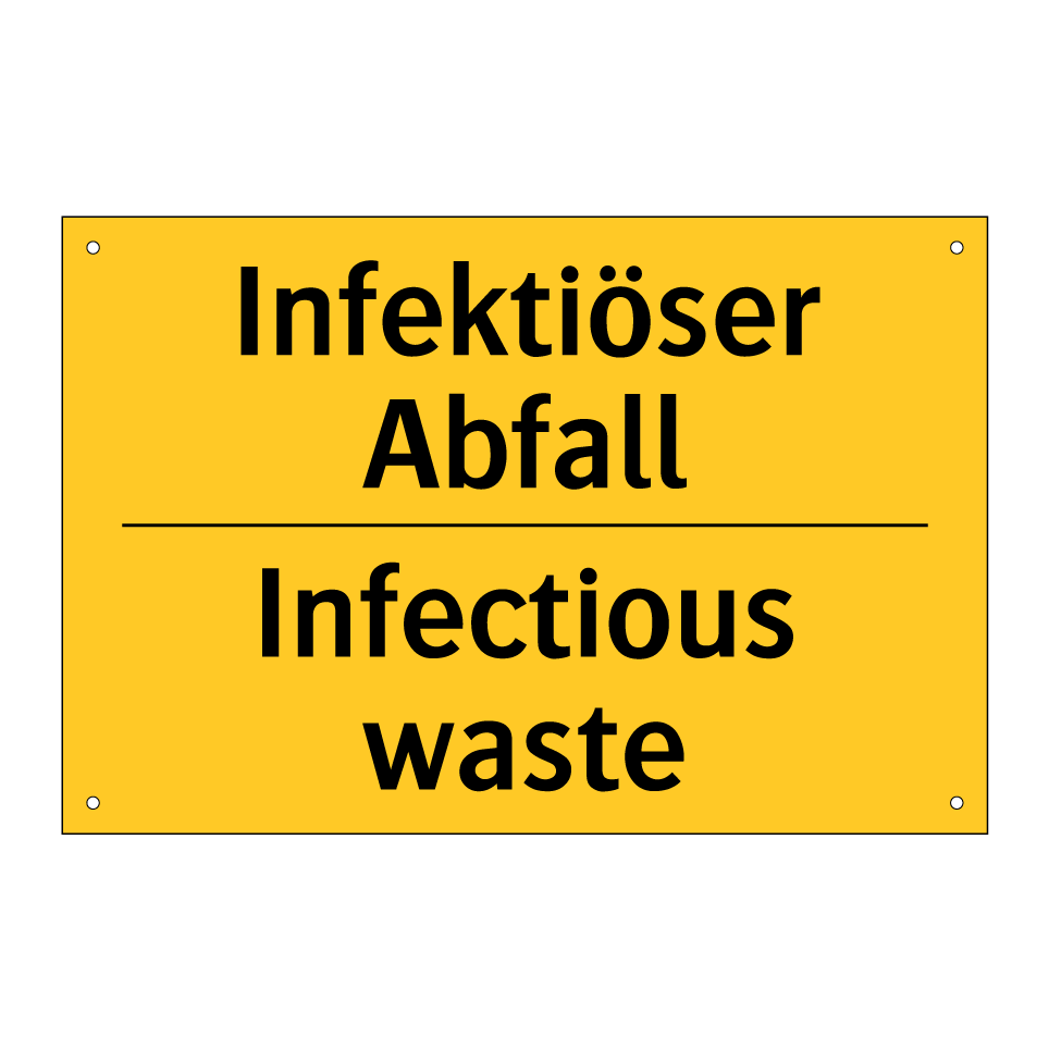 Zweisprachiges Warnschild mit deutschem Text Infektiöser Abfall und englischem Text Infectious waste