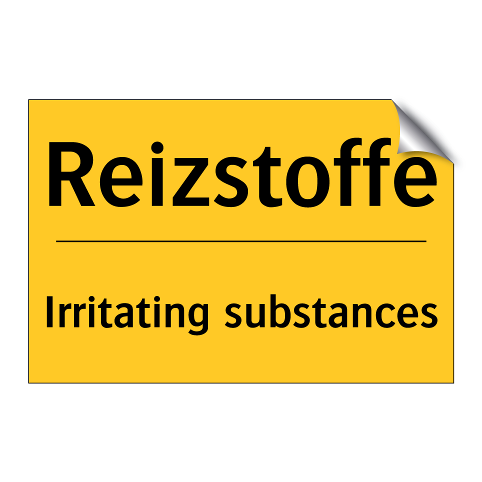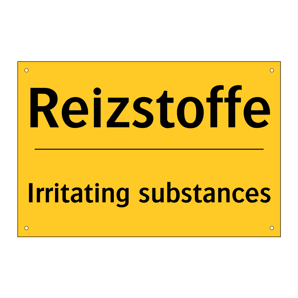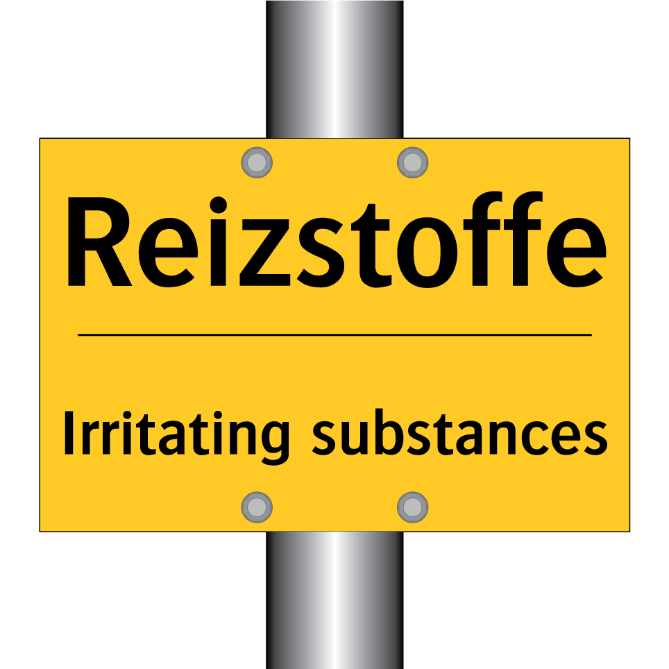 Zweisprachiges Warnschild mit deutschem Text Reizstoffe und englischem Text Irritating substances