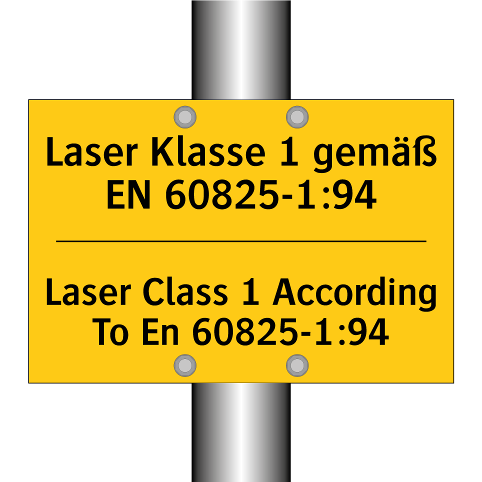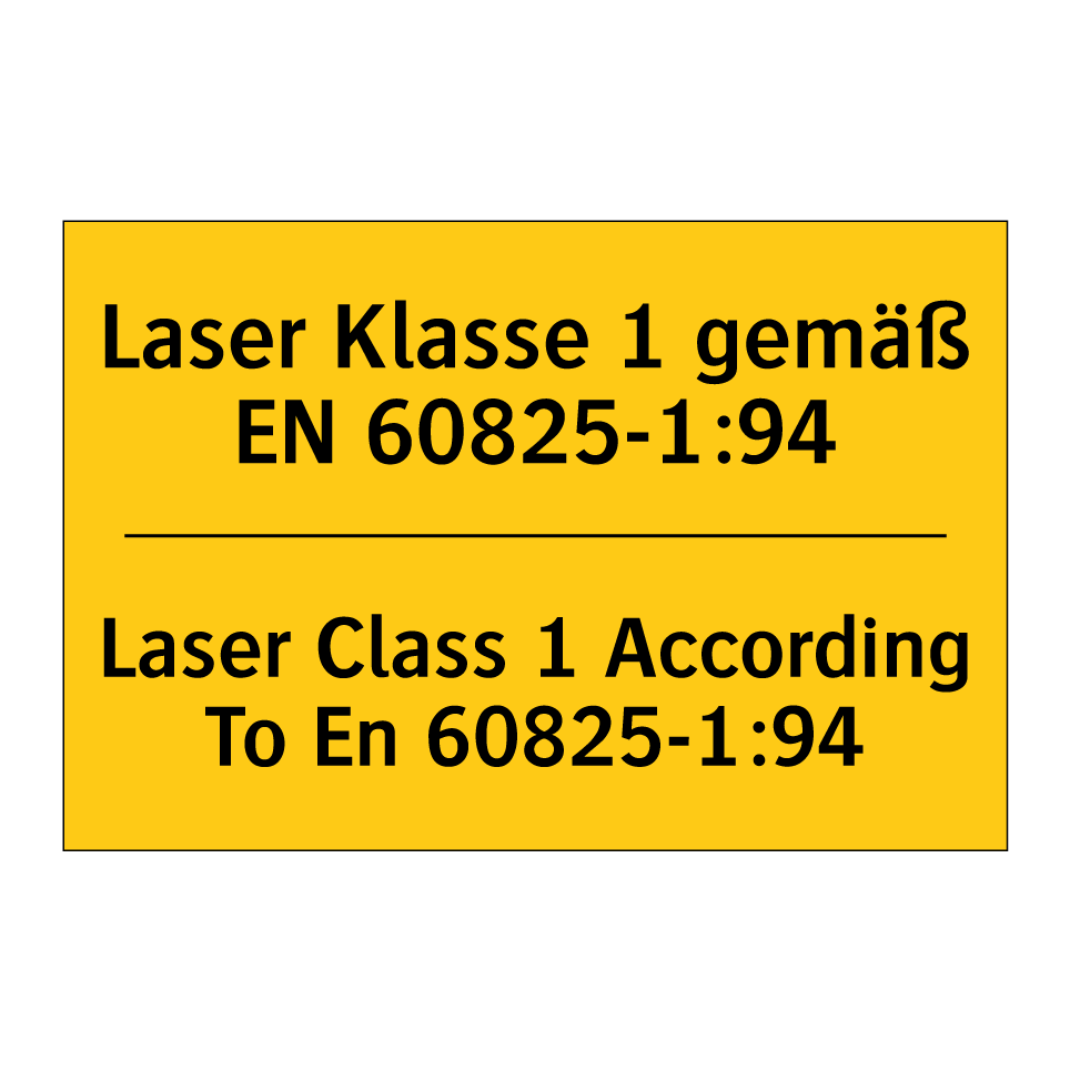 Zweisprachiges Warnschild mit deutschem Text Laser Klasse 1 gemäß EN 60825-1:94 und englischem Text Laser Class 1 According To En 60825-1:94