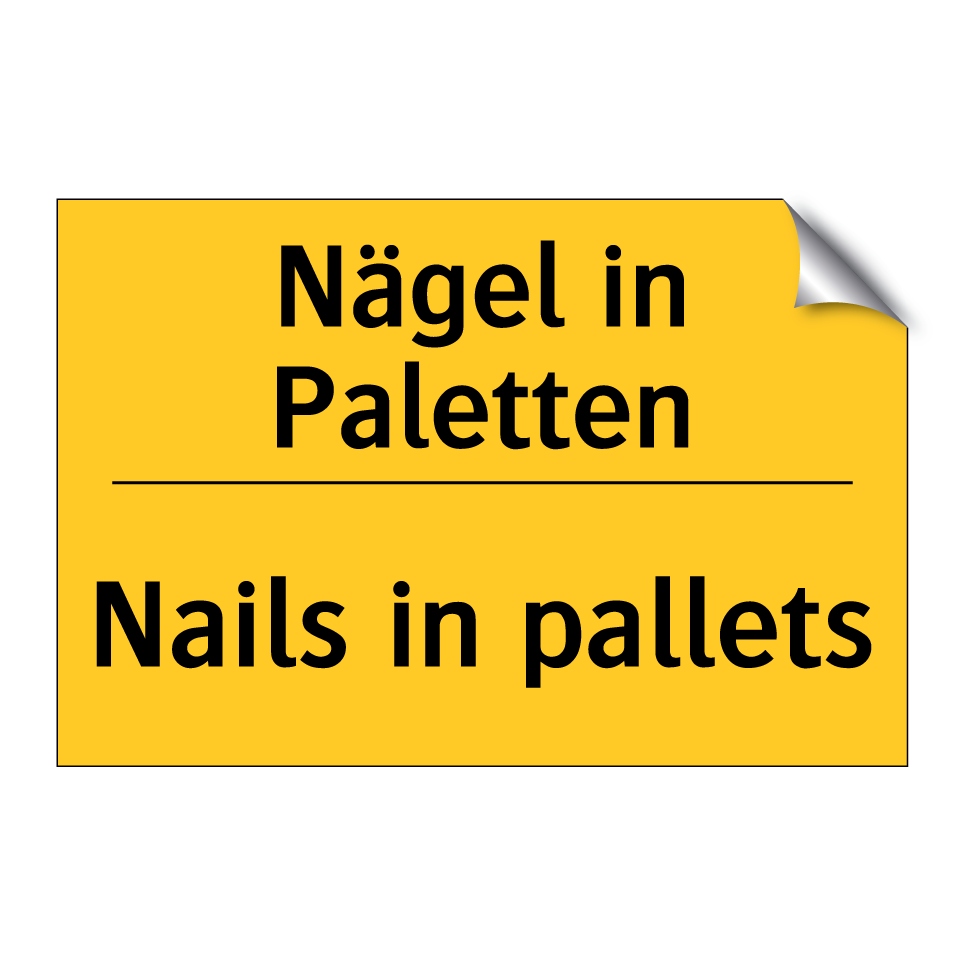 Zweisprachiges Warnschild mit deutschem Text Nägel in Paletten und englischem Text Nails in pallets