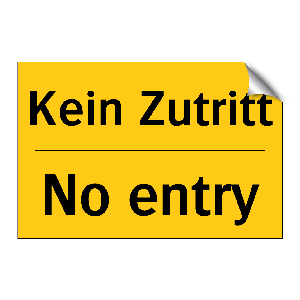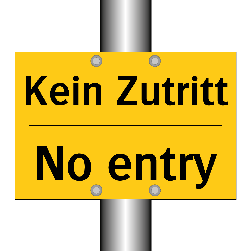 Zweisprachiges Warnschild mit deutschem Text Kein Zutritt und englischem Text No entry