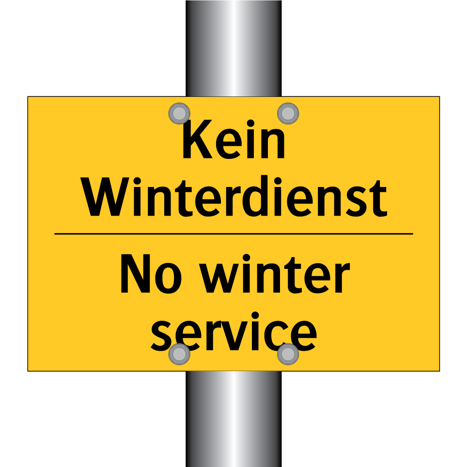 Zweisprachiges Warnschild mit deutschem Text Kein Winterdienst und englischem Text No winter service