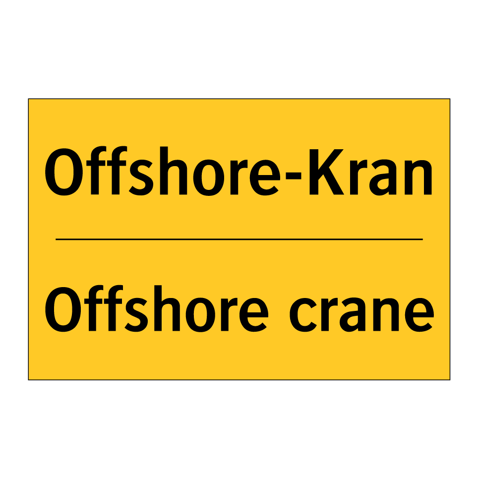 Zweisprachiges Warnschild mit deutschem Text Offshore-Kran und englischem Text Offshore crane