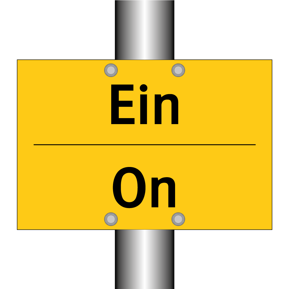 Zweisprachiges Warnschild mit deutschem Text Ein und englischem Text On