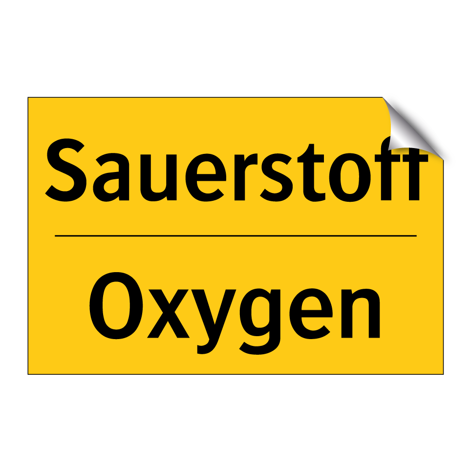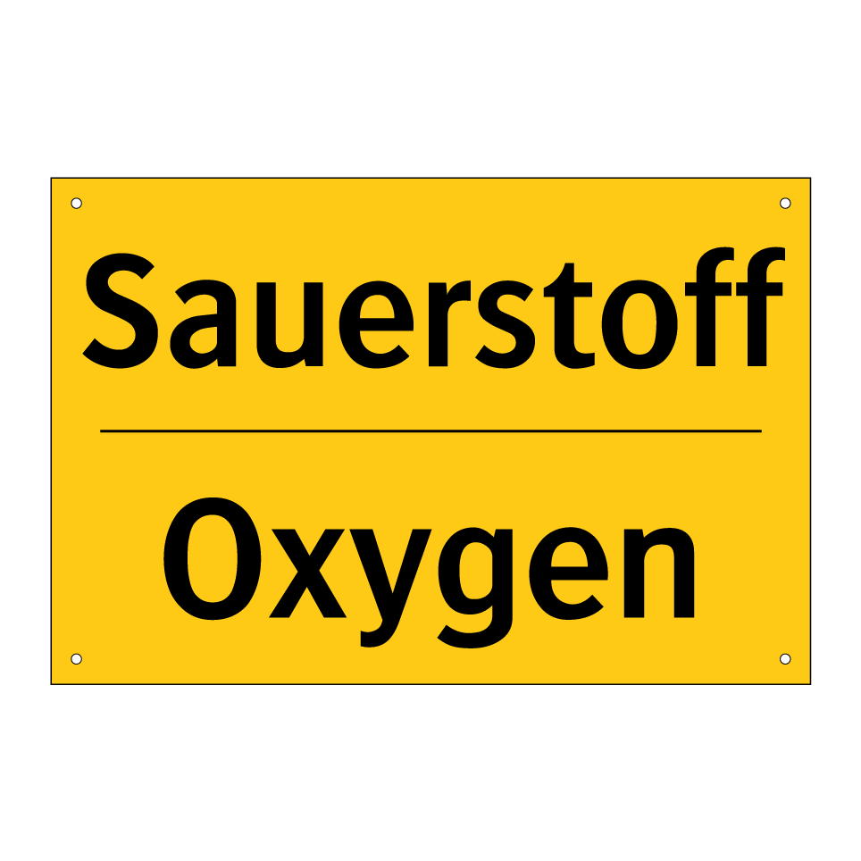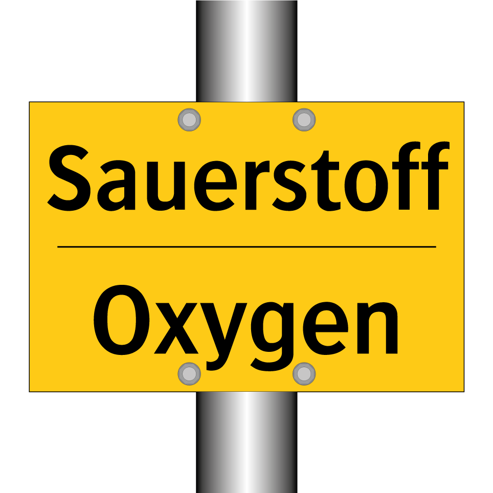 Zweisprachiges Warnschild mit deutschem Text Sauerstoff und englischem Text Oxygen