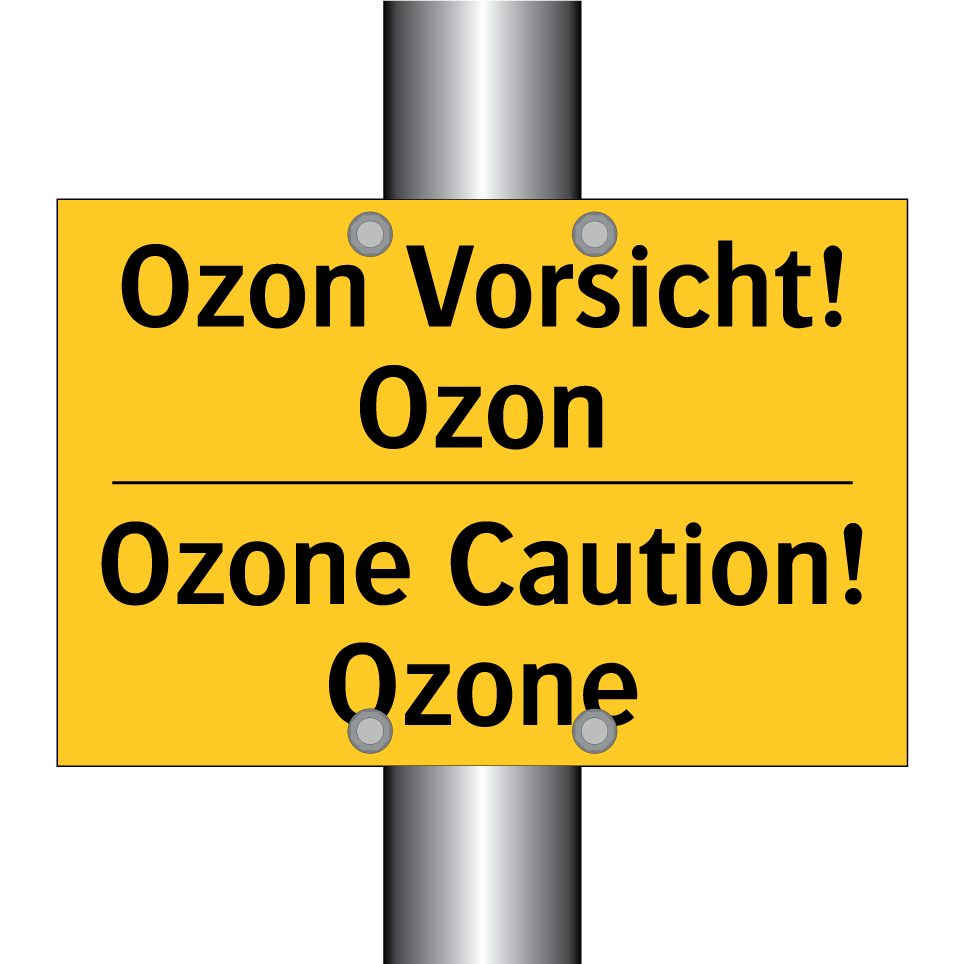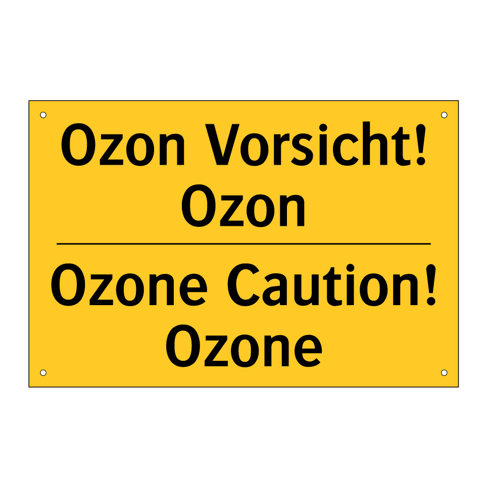 Zweisprachiges Warnschild mit deutschem Text Ozon Vorsicht! Ozon und englischem Text Ozone Caution! Ozone