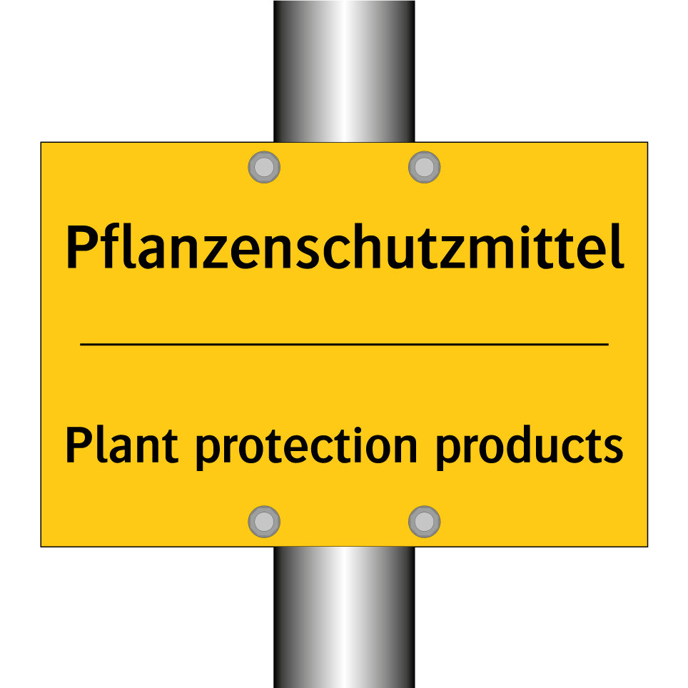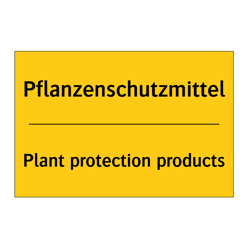 Zweisprachiges Warnschild mit deutschem Text Pflanzenschutzmittel und englischem Text Plant protection products