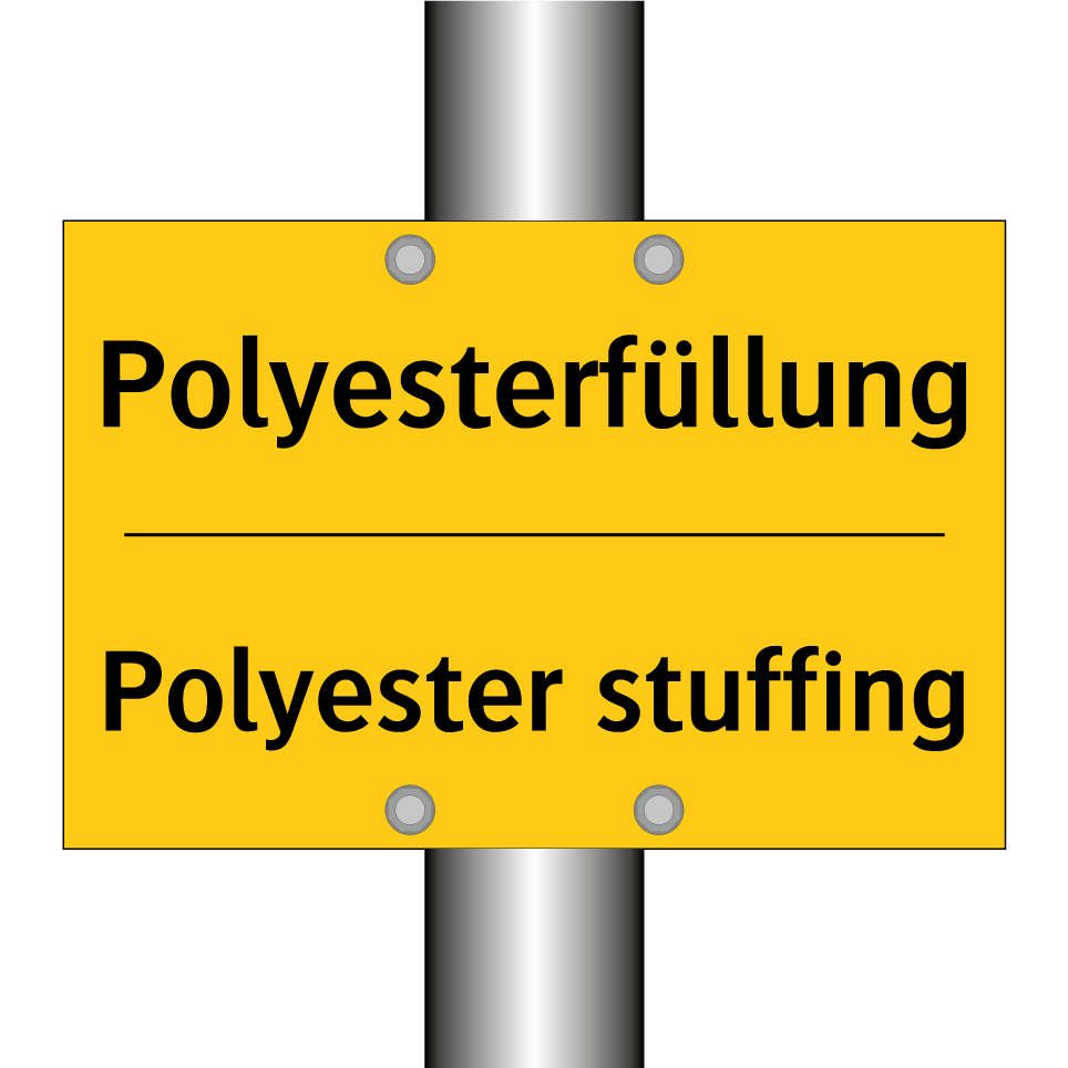 Zweisprachiges Warnschild mit deutschem Text Polyesterfüllung und englischem Text Polyester stuffing